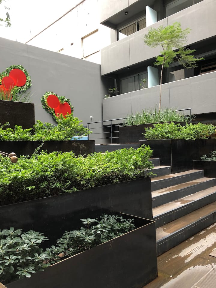 Квартира-студия в современном здании в San Telmo. Обстановка включает полностью оборудованную кухню, постельное бельё, кондиционирование «горячий/холодный», панели отопления и ванную комнату с душем. Здание с 24-часовой охраной, прачечной, бассейном и тренажёрным залом. Бассейн включается с 11/01/2019; также указаны терраса у бассейна и раздевалка в спортзале. В 100 метрах находится станция метро и остановки общественного транспорта, в 400 метрах — остановка туристического автобуса.