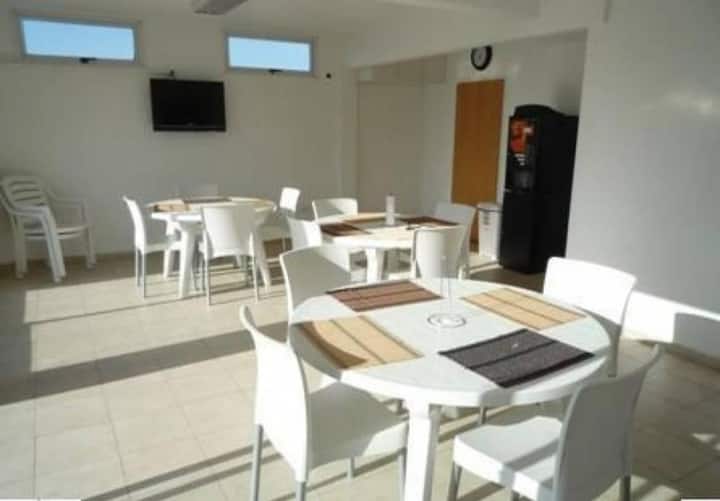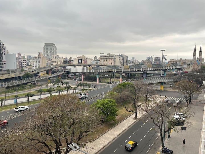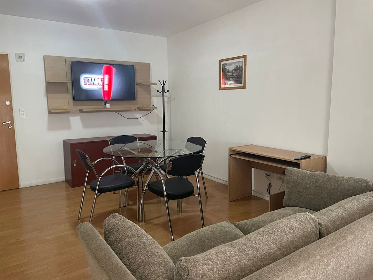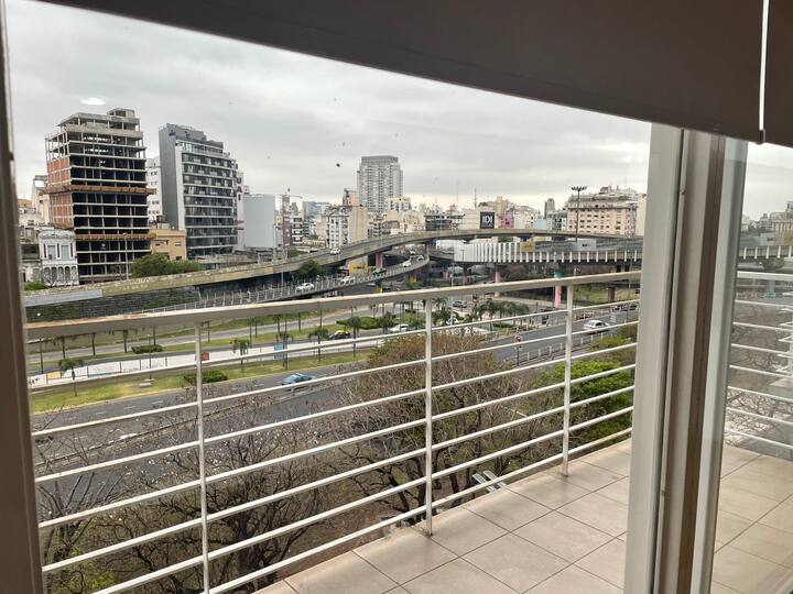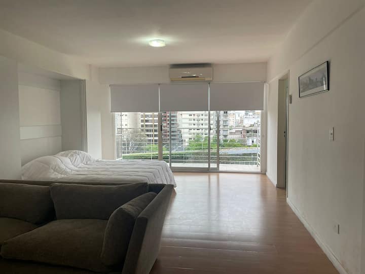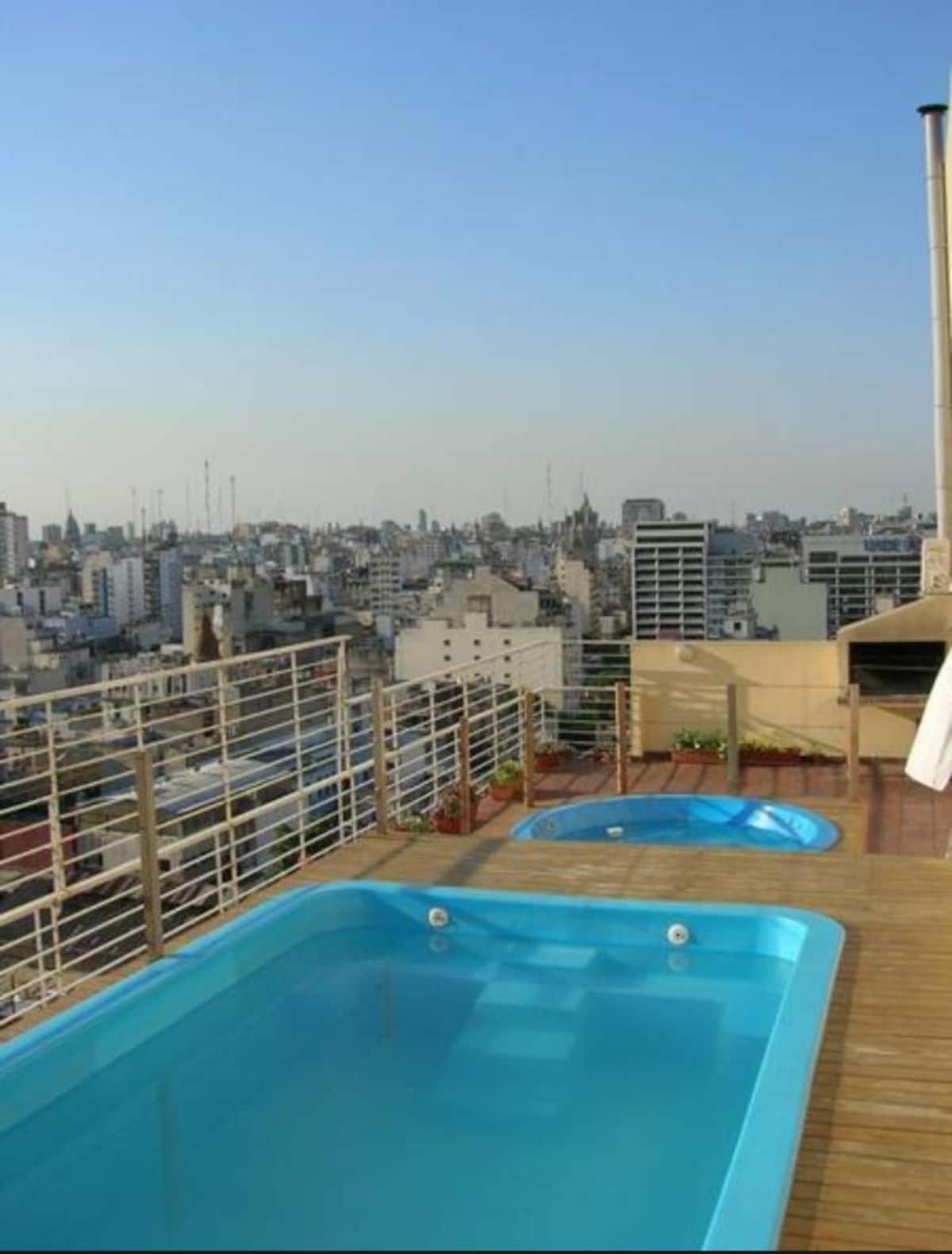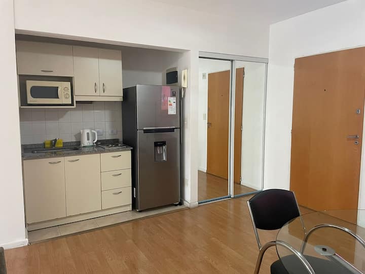 Квартира-студия в Constitución. Площадь не указана; есть сплит-система холод-тепло, телевизор, двуспальная кровать, мини-кухня и рабочий стол. В квартире есть ванная с биде, WiFi и балкон с видом на Buenos Aires. Здание располагает террасой с бассейном, сауной, прачечной, общим залом для жильцов и тренажёрным залом. Рядом с UADE и UAI, а также с подземкой и шоссе Buenos Aires – La Plata.