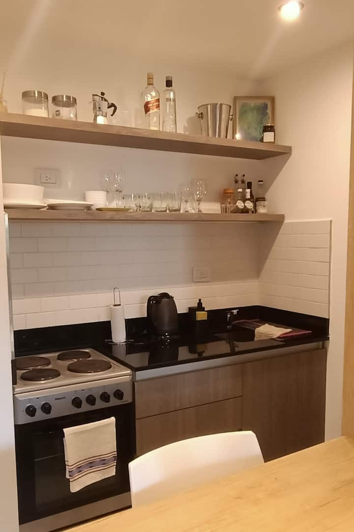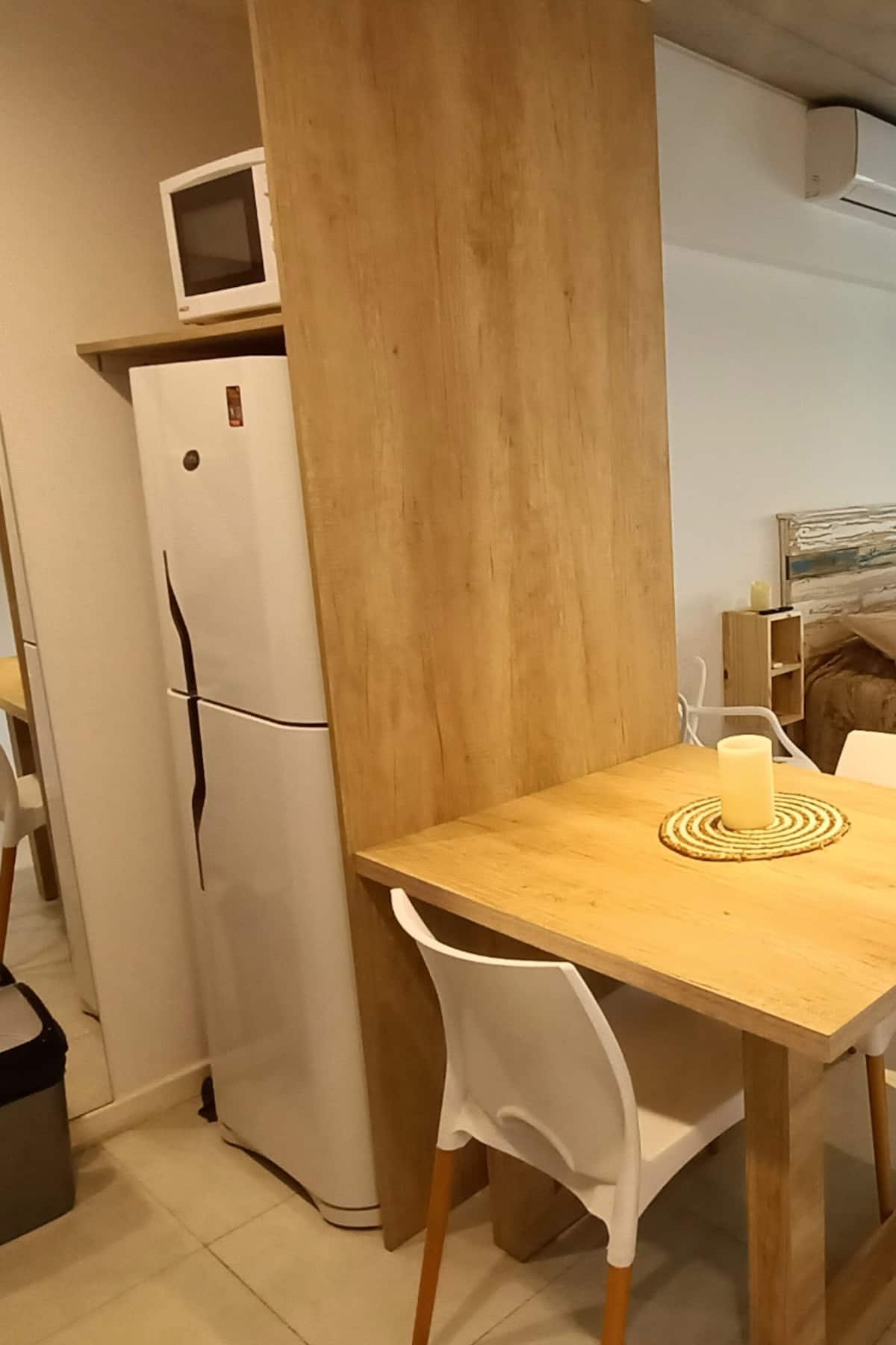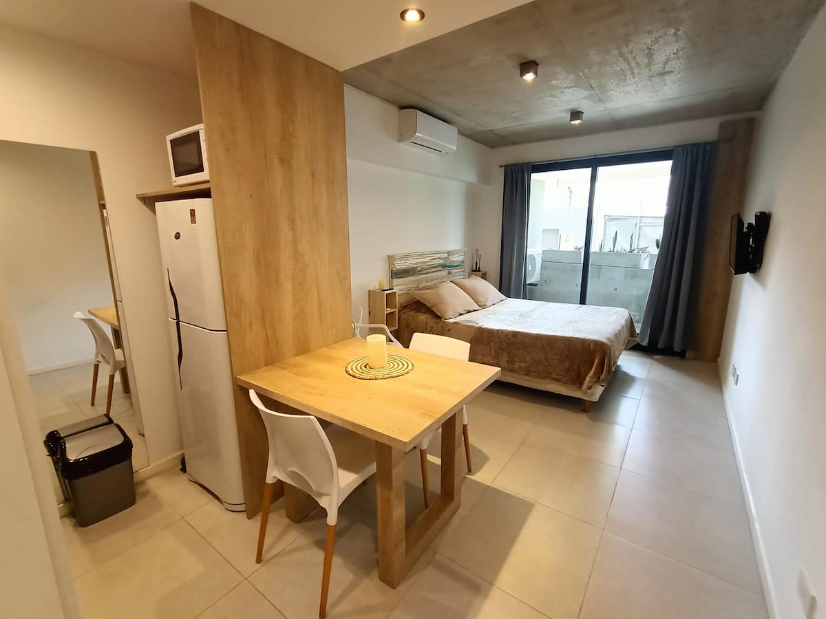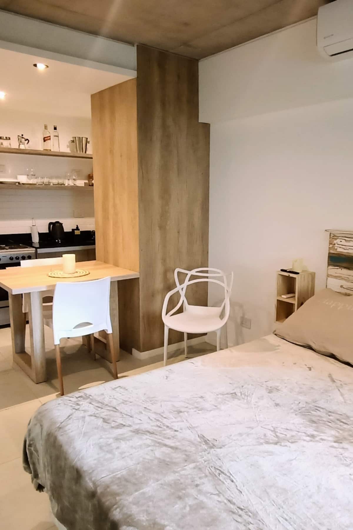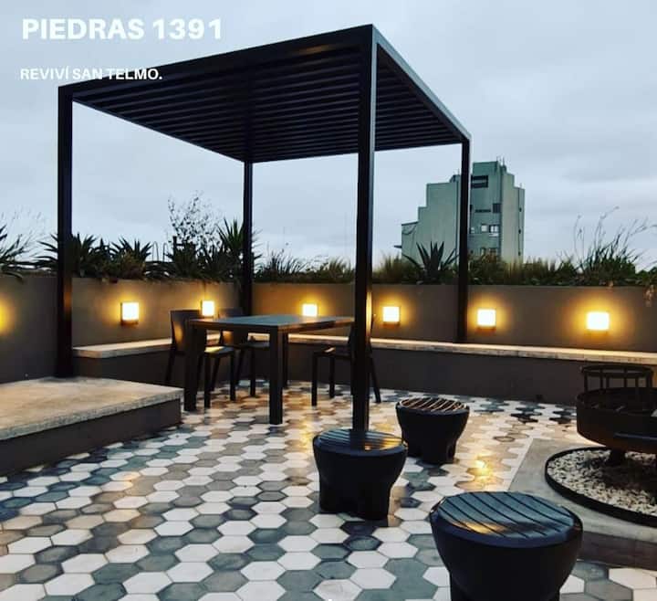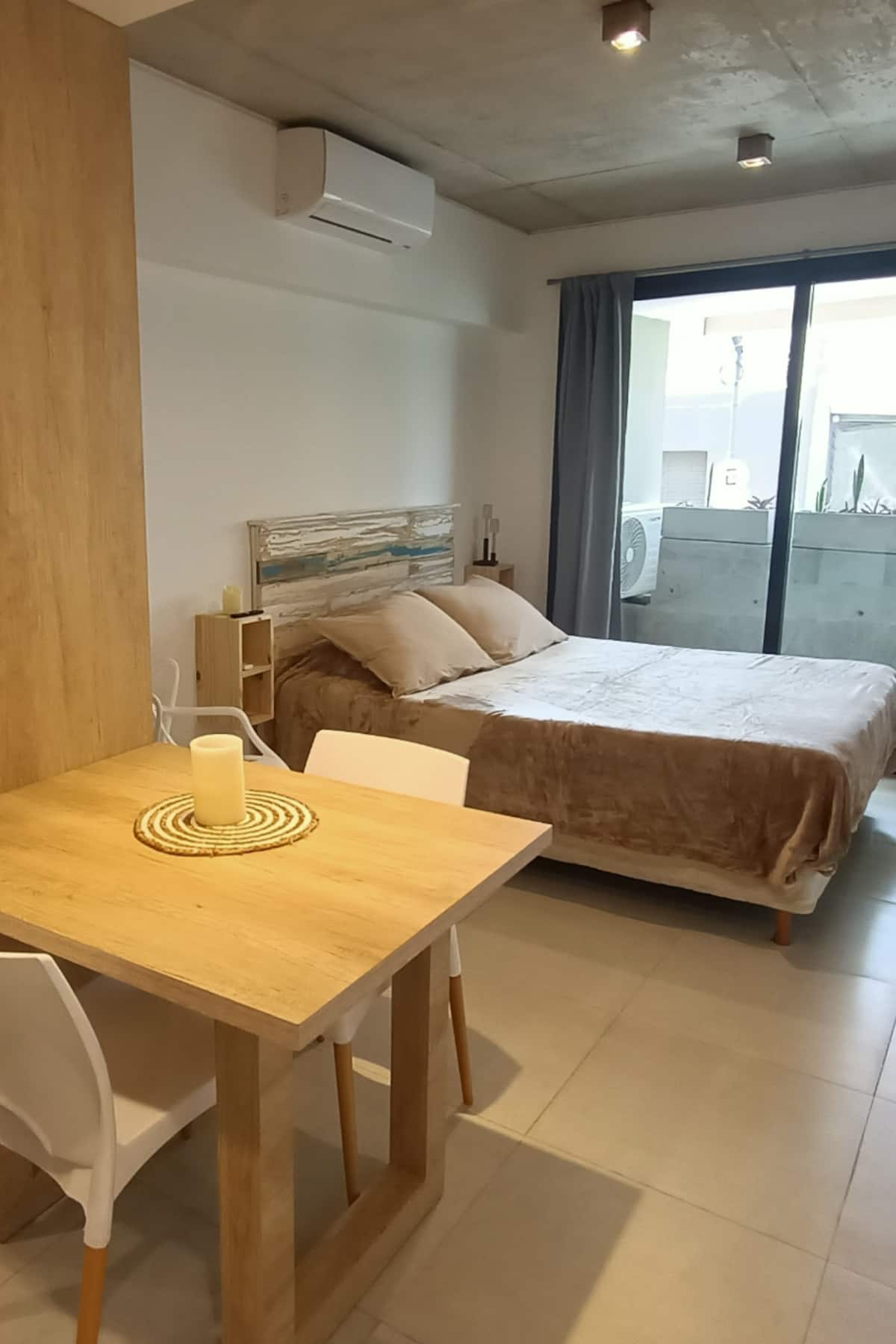Квартира-студия 37 m² в районе San Telmo на 1-м этаже. Размещается 2 человека, двуспальная кровать 1.80x200. В распоряжении Smart TV, Netflix, холодильник с морозильной камерой, кухня с духовкой и плитой, микроволновая печь, электрочайник, Wi‑Fi, утюг и фен. На 11-м этаже предусмотрена терраса, а также душевая зона. В стоимость включён доступ к арендуемому помещению; действуют правила дома о выключении света, кондиционера и радиаторного пола при выходе и о выносе мусора в контейнеры на лестничны
