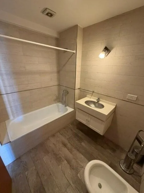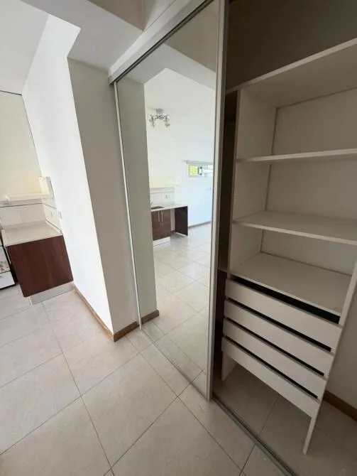 Квартира-студия в аренду в Monte Grande, район Esteban Echeverría. Площадь не указана. Кухня с нижними шкафами, гардероб (placard) и ванная комната с ванной. Балкон, установлен кондиционер; передаётся с осветительными приборами и шторами.