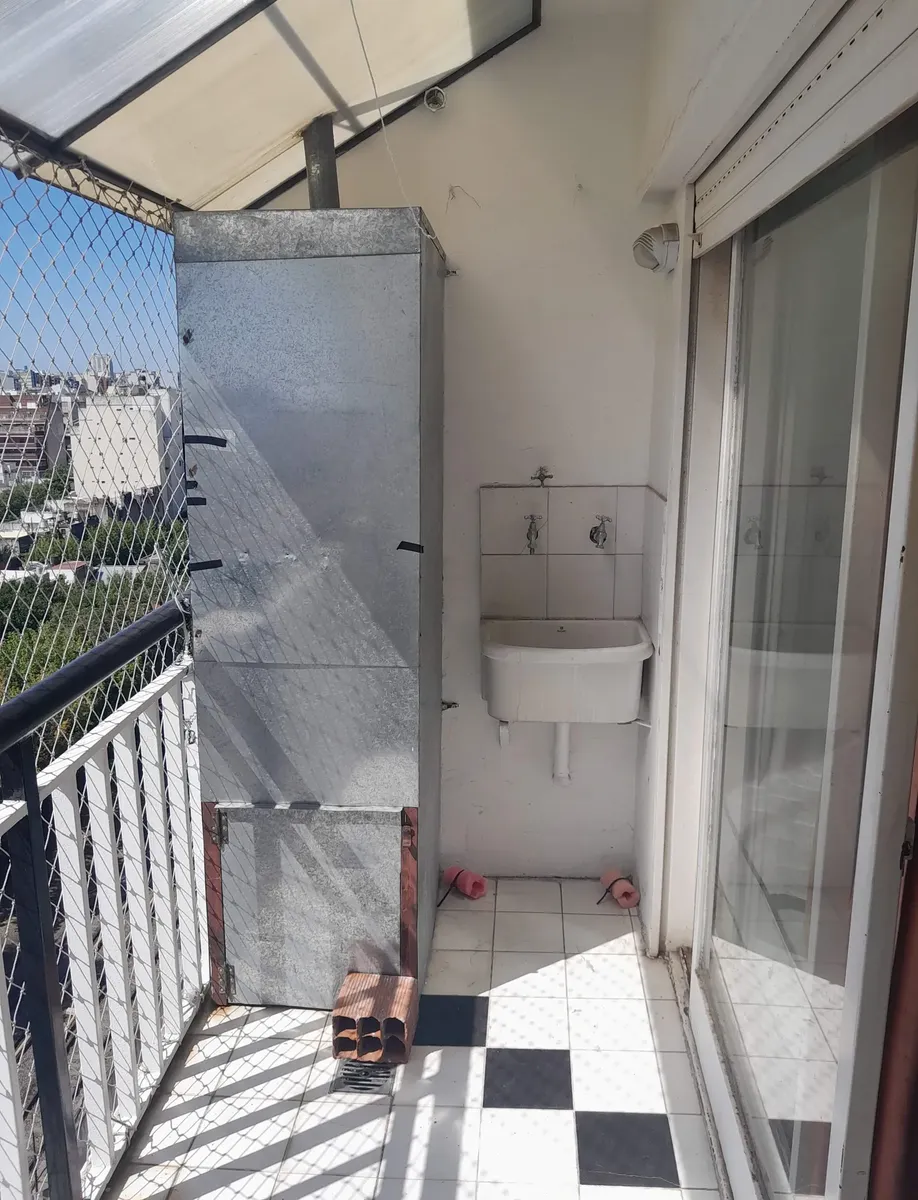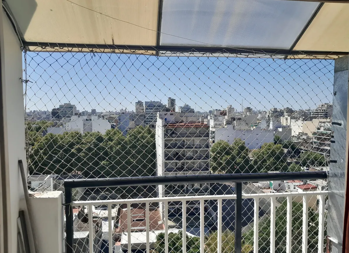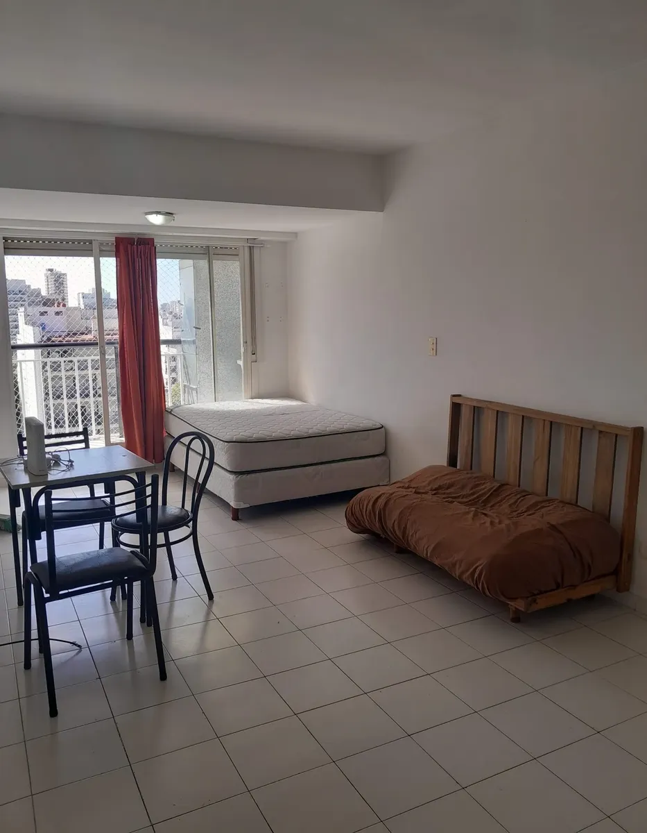 Квартира-студия в Flores, окна на площадь. Встроенный шкаф. Отдельная кухня и балкон с местом для стиральной машины. С мебелью: холодильник, кровать, диван и обеденный стол; предусмотрены холодильник и другая мебель. Допускаются домашние животные. Указано, что рядом находятся станция subte Línea A, железнодорожная линия Sarmiento и Metrobús.