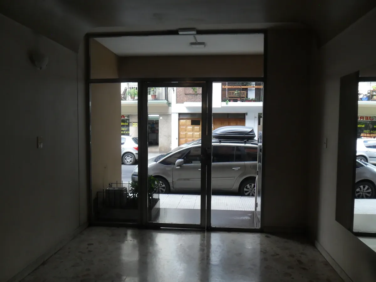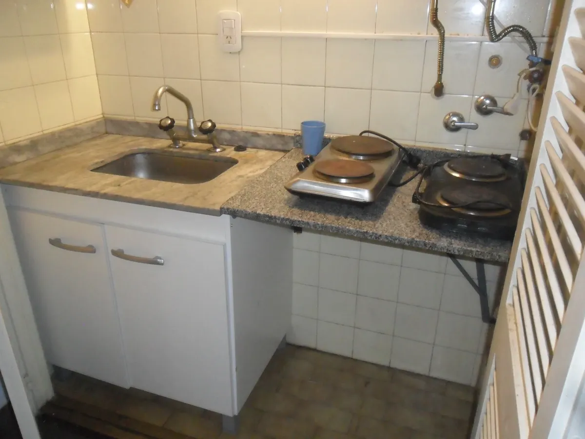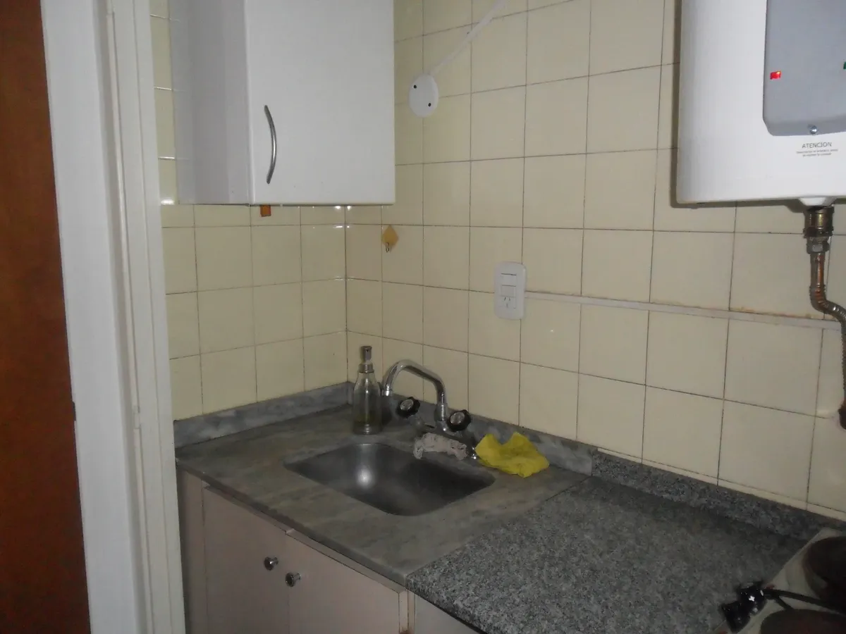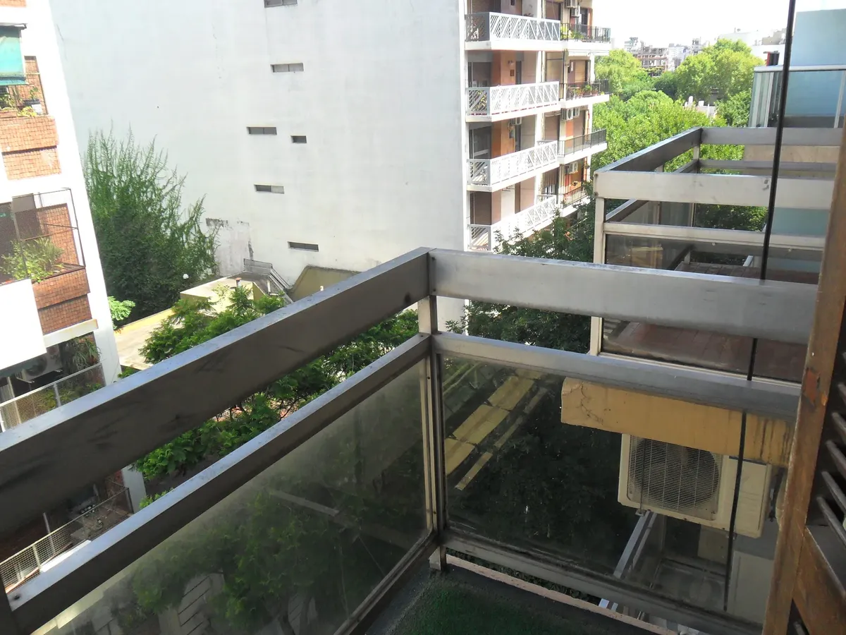 Квартира-студия площадью не указана, окна на улицу (или на запад), с балконом. Пол с ковровым покрытием, установлен кондиционер. В планировке предусмотрены входной холл, коридор, ванная с душем и вентиляционным отверстием, основное помещение с выходом на балкон, мобильный шкаф, американская кухня с бойлером и электрической варочной панелью; есть ниша и полки. В доме 3 квартиры на этаже, всего 8 этажей. Коммунальные платежи здания включают AySA. Договор аренды на 2 года с квартальной индексацией