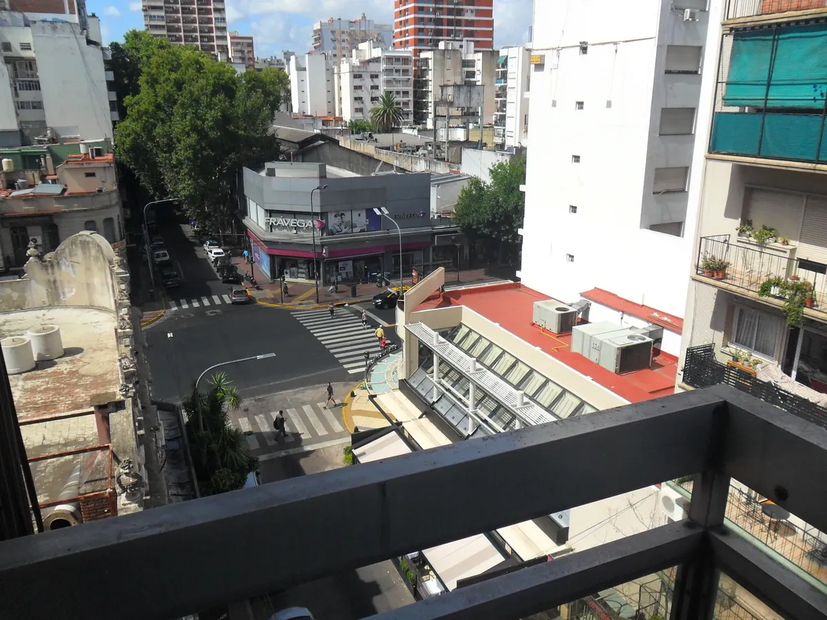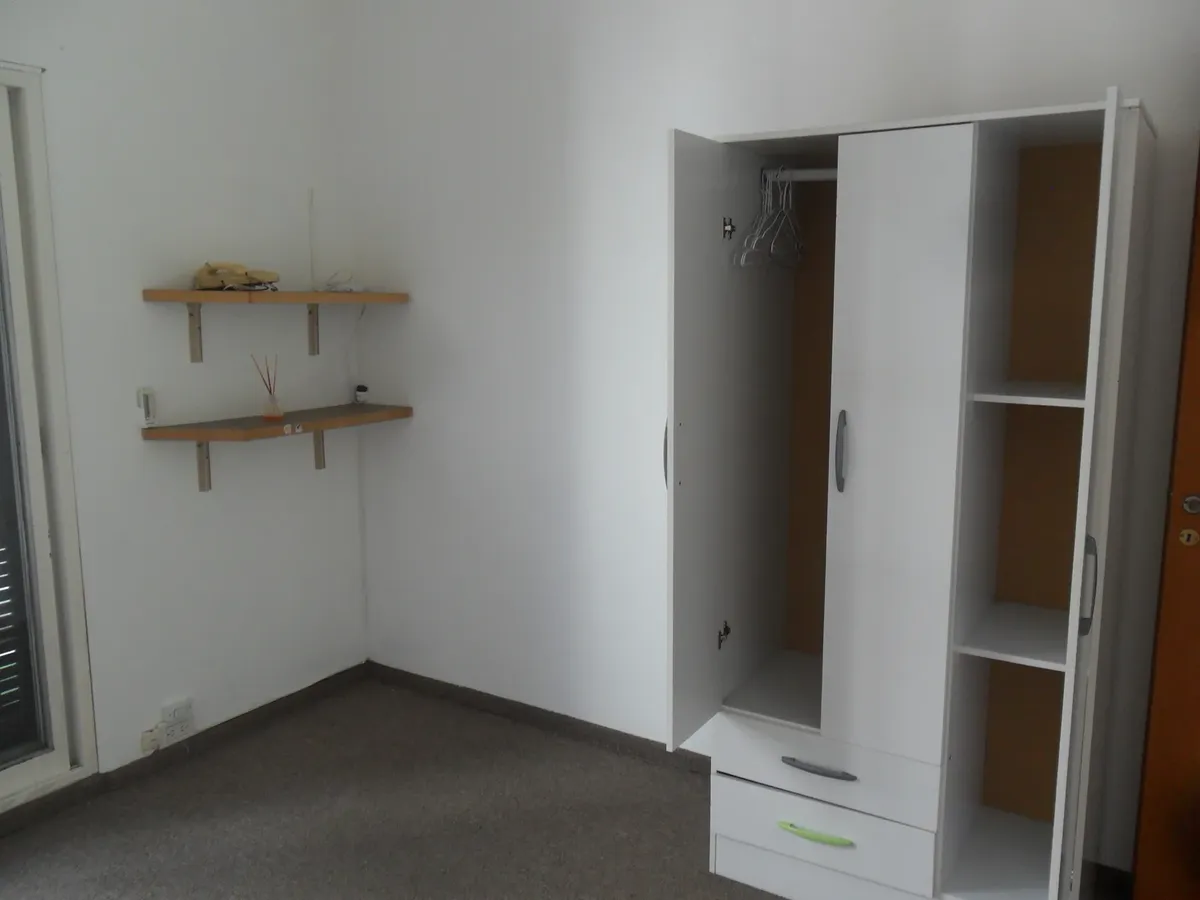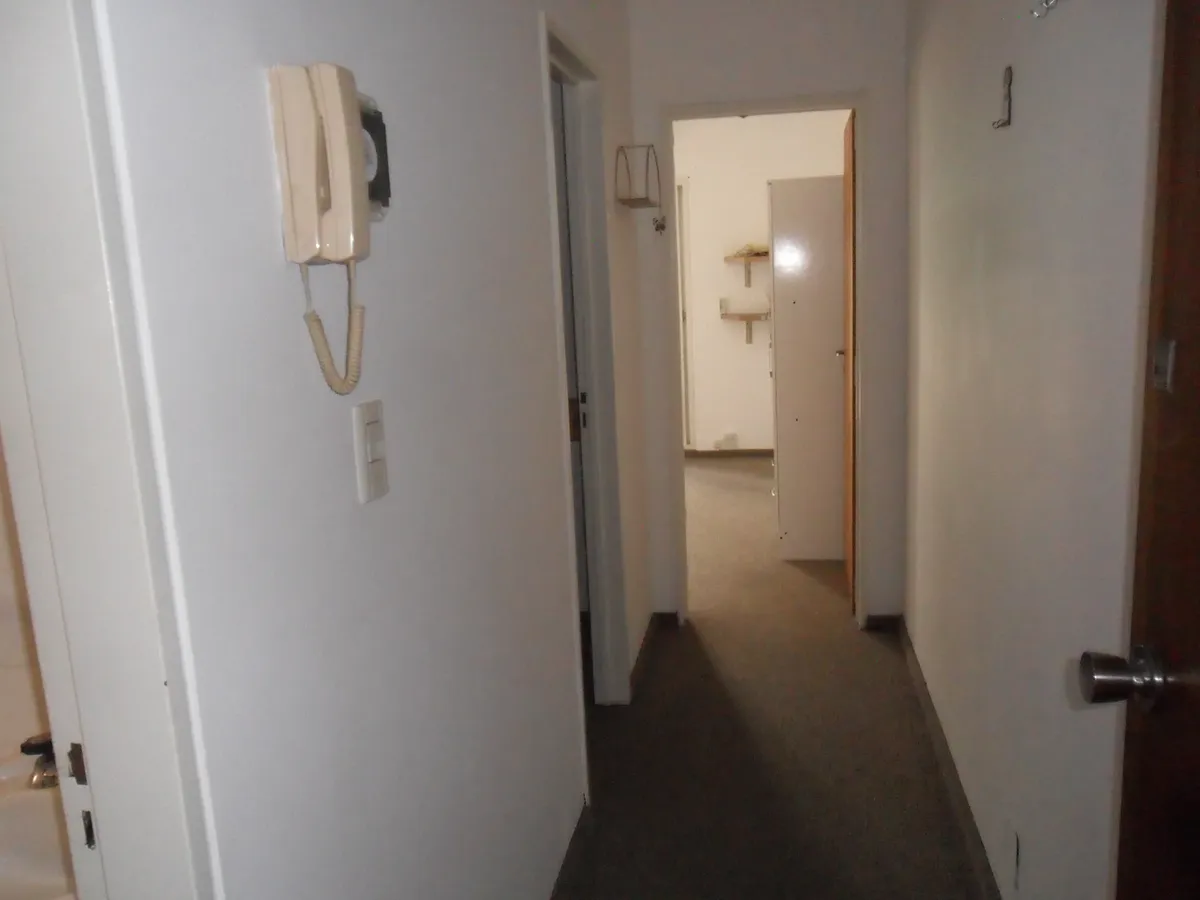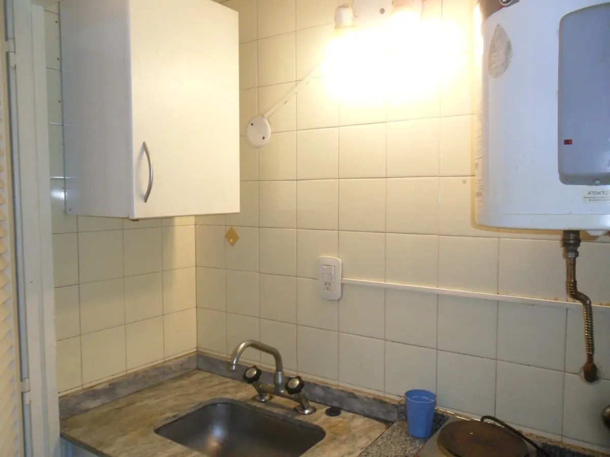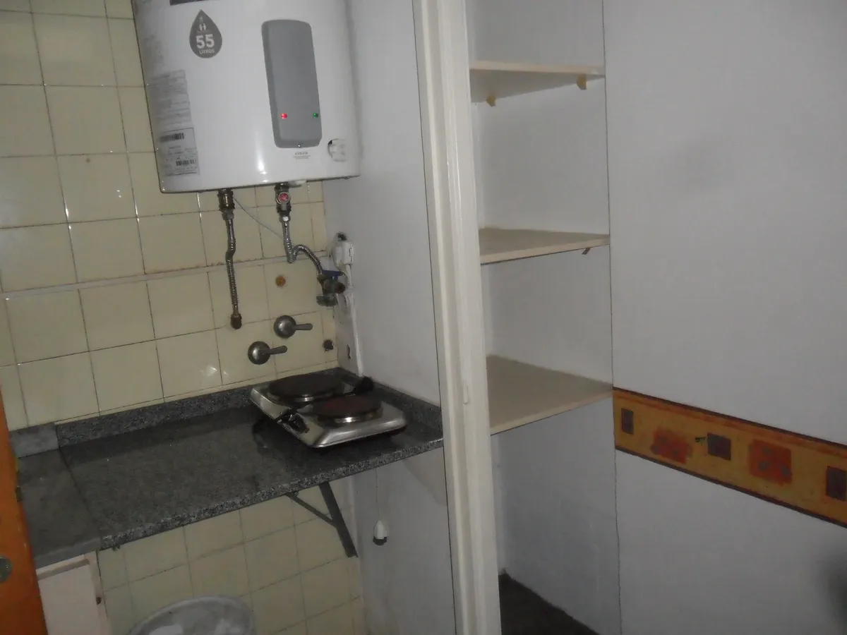 Квартира-студия площадью не указана, окна на улицу (или на запад), с балконом. Пол с ковровым покрытием, установлен кондиционер. В планировке предусмотрены входной холл, коридор, ванная с душем и вентиляционным отверстием, основное помещение с выходом на балкон, мобильный шкаф, американская кухня с бойлером и электрической варочной панелью; есть ниша и полки. В доме 3 квартиры на этаже, всего 8 этажей. Коммунальные платежи здания включают AySA. Договор аренды на 2 года с квартальной индексацией