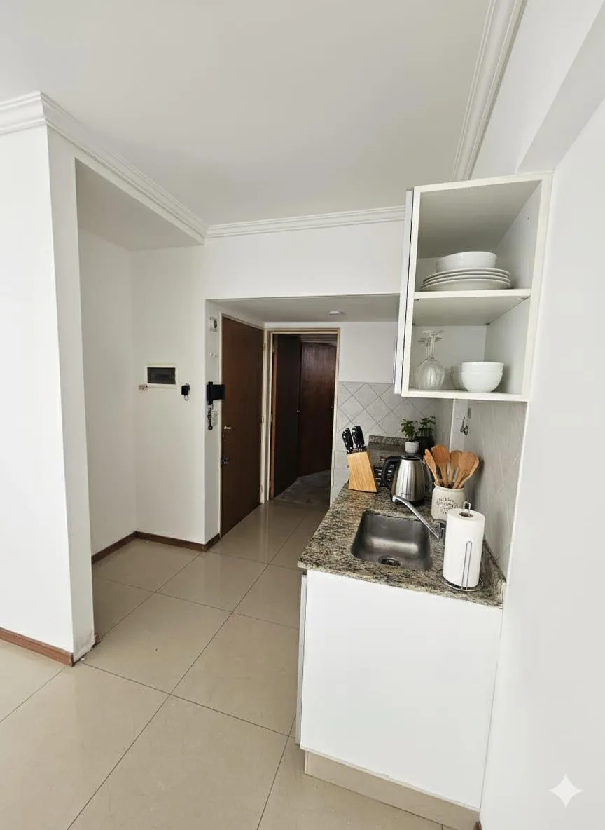 Квартира-студия в Flores, окна во двор (contra frente), без балкона. Высокий этаж. Кухня в формате американской, газ, мебель под мойкой и верхние шкафы. В ванной с ванной-раковиной есть подключение для стиральной машины; установлен электрический водонагреватель 90 l. Окна со стеклопакетами (DVH), подготовка под кондиционер F/C. Комната 4.06x4.05 m, ванная 1.74x1.50 m. Коммунальные платежи здания: $100.000, включают AYSA. Указаны условия аренды: залог и предоплата по $530.000, а также расходы на
