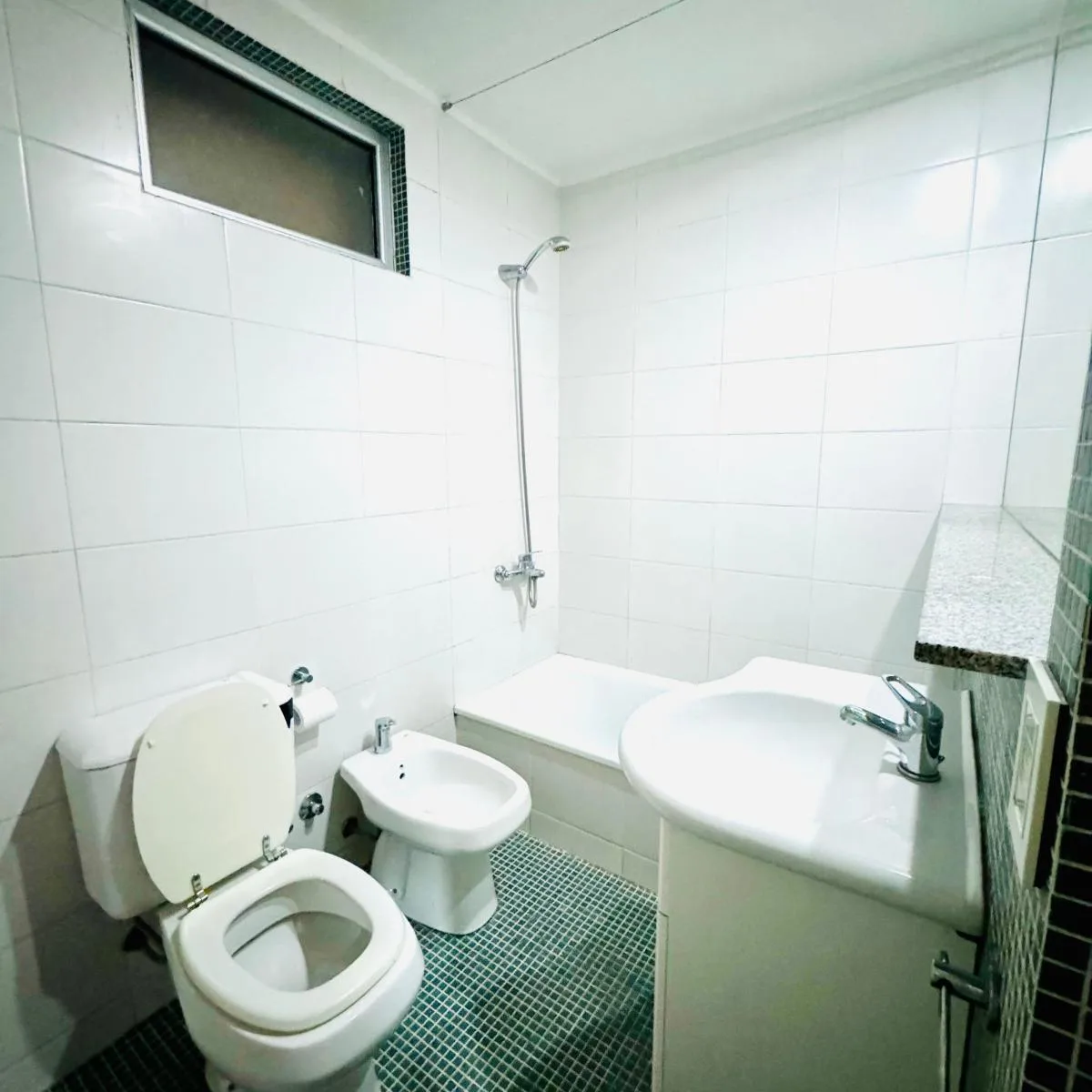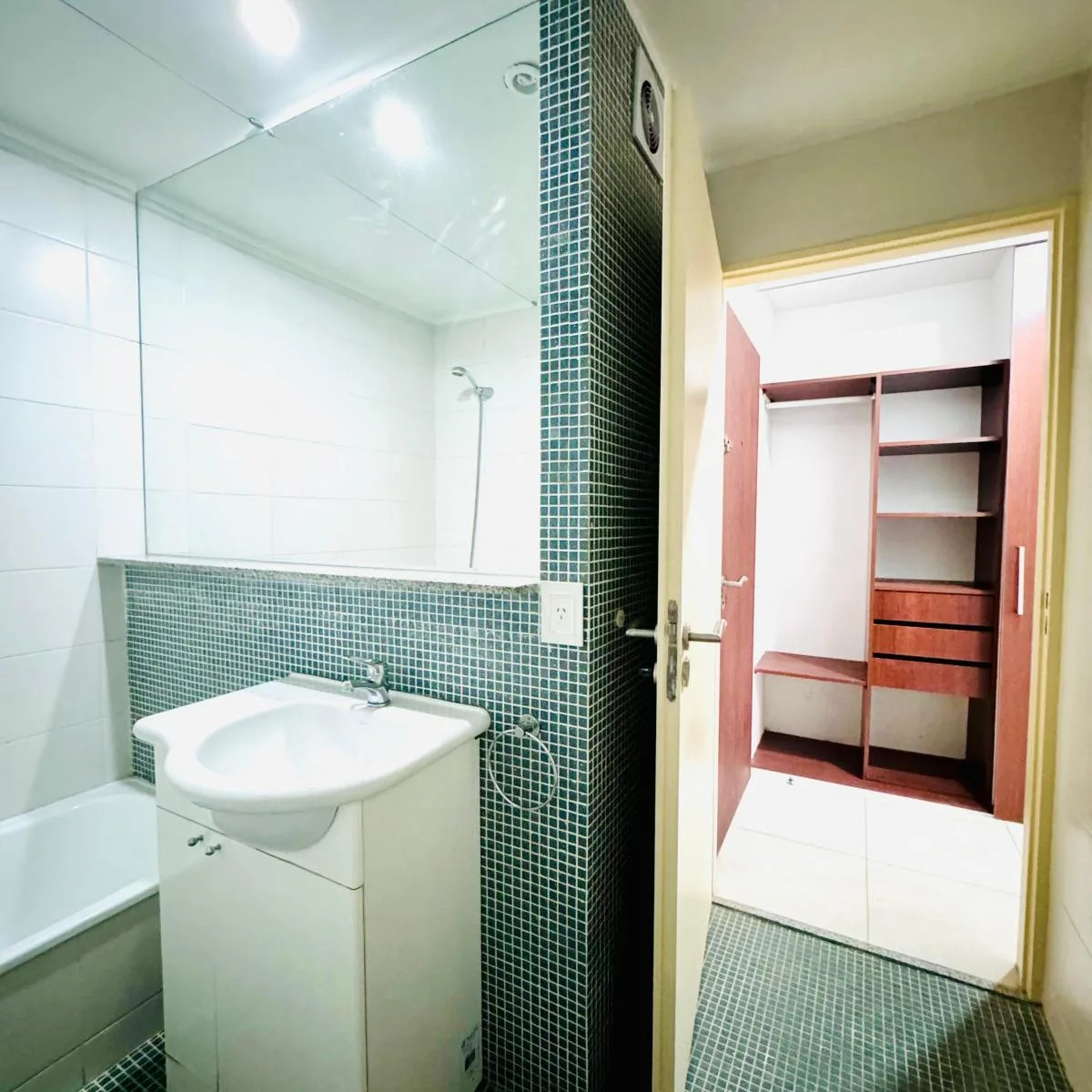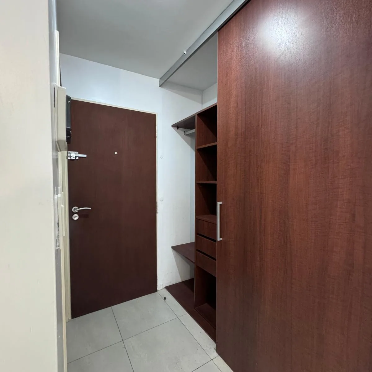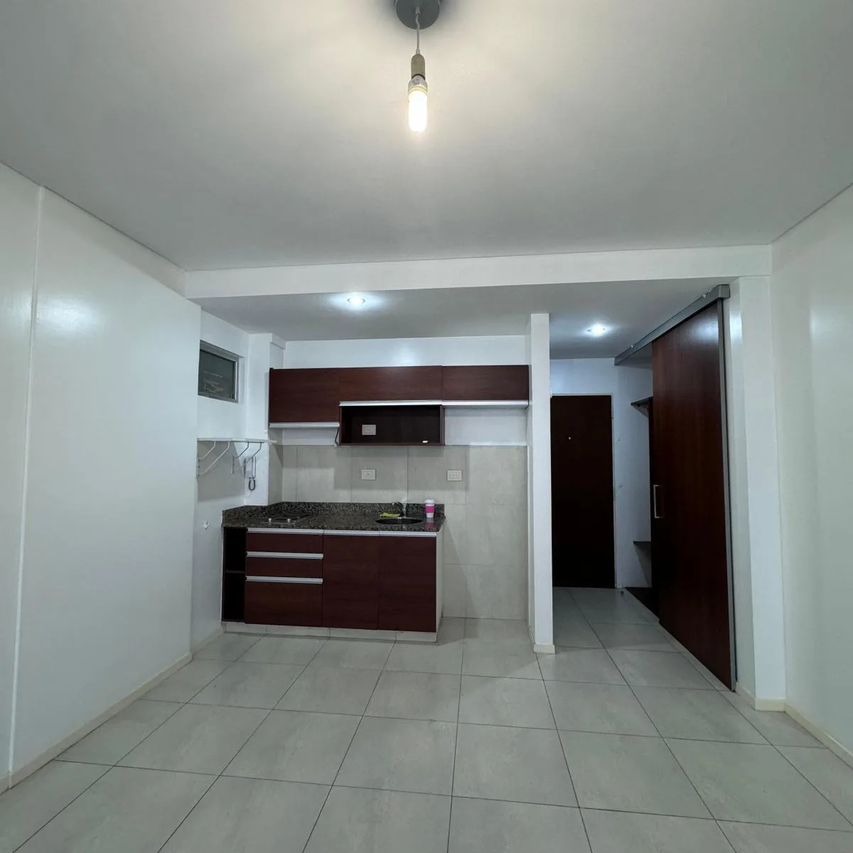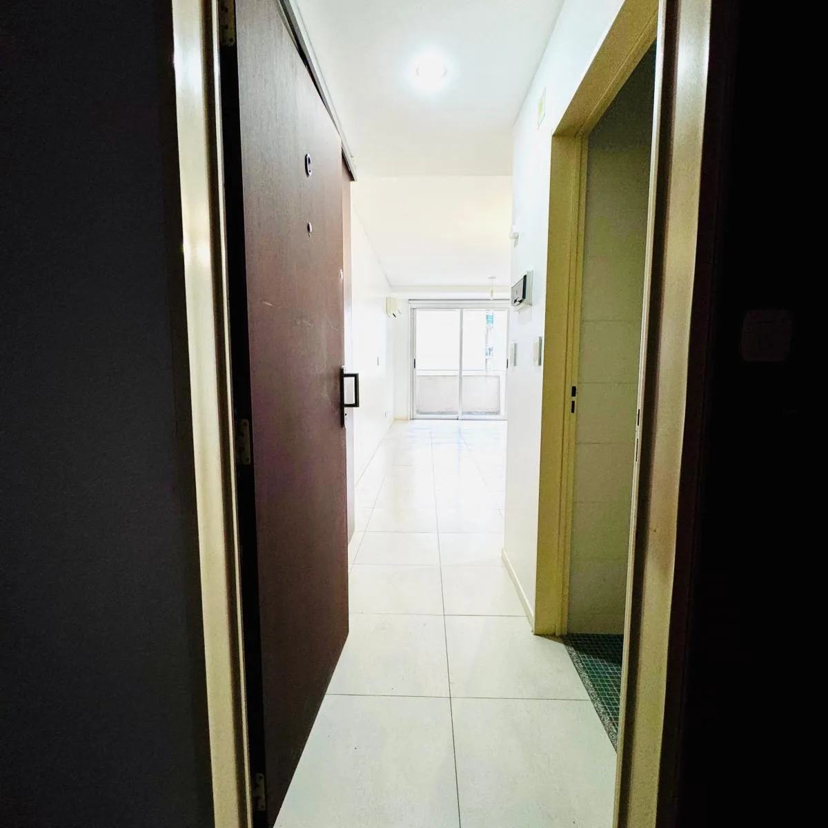 Квартира-студия площадью 36 m² с балконом во внутренний двор квартала в Flores. Кухня оснащена электрической варочной поверхностью, установлен кондиционер (холод/тепло), есть шкаф с внутренним наполнением. В ванной комнате предусмотрено место под стиральную машину; в здании есть бассейн, общий зал для жильцов (SUM) и зона гриля на последнем этаже.