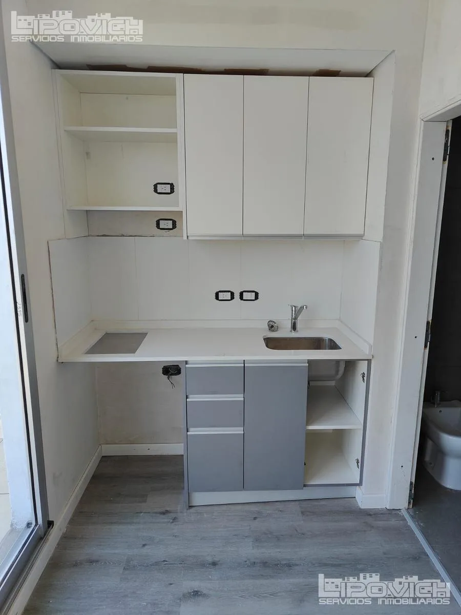 Квартира-студия новая (никто не жил) в 12-м этаже, окна на улицу, с балконом-террасой. Подходит для профессионального использования. Встроенная кухня, совмещённая ванная комната, установлена сплит-система F/C, есть предварительная подготовка для зоны гриля. В здании предусмотрены бассейн, солярий, зона гриля и прачечная, а также подготовка к работе группы электроснабжения. Коммунальные платежи здания включают AYSA и центральное горячее водоснабжение.