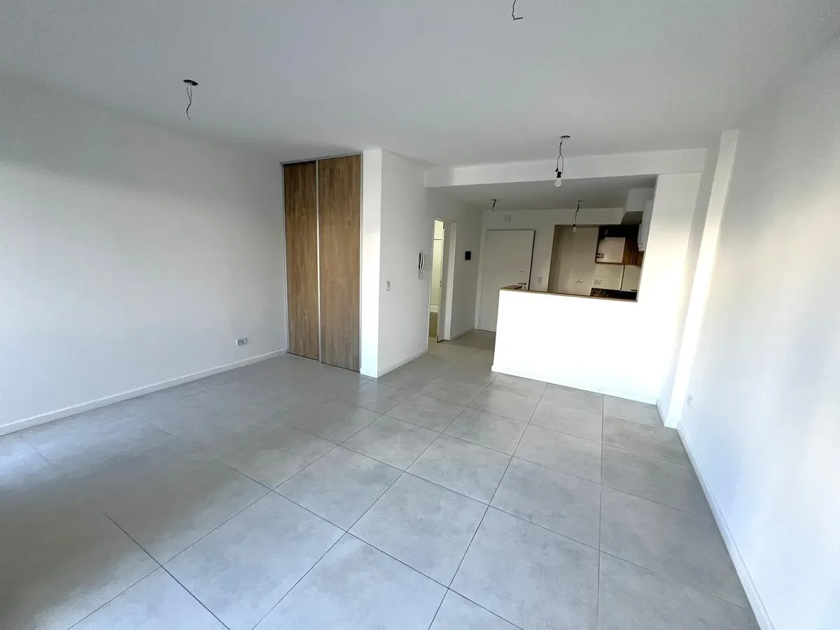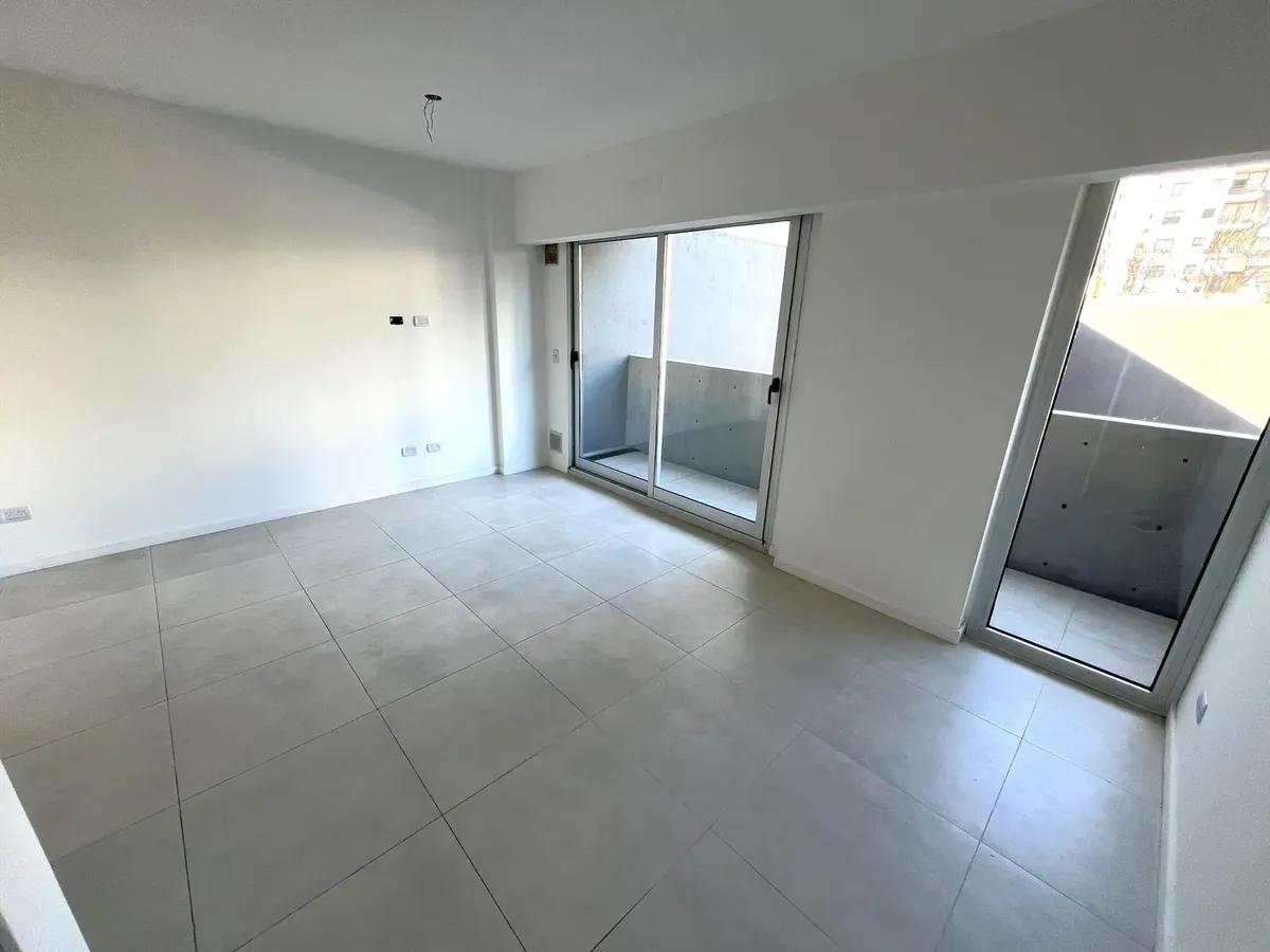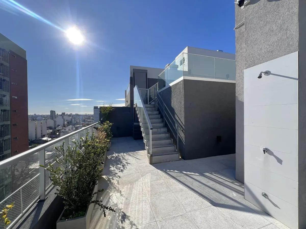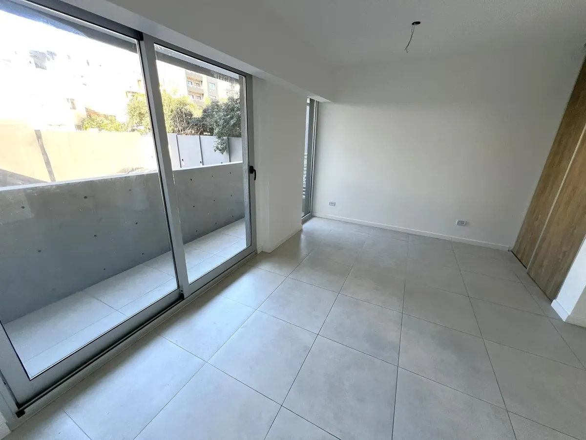 Квартира-студия в Flores, 1-й этаж, окна во двор/контра-фронт (балкон по всей длине). Ориентация на восток. В помещении плиточный пол, кухня в формате open space с газовой плитой и встроенной зоной для стирки, тёплая вода от электрического термонакопителя. Есть встроенный шкаф и ванная комната с ванной, сплит-кондиционер (холод/тепло). Окна из анодированного алюминия со стеклопакетами (DVH). В здании 2 лифта, один из них грузовой, рассчитан на 10 человек. На крыше: общая гостиная для жильцов (SU