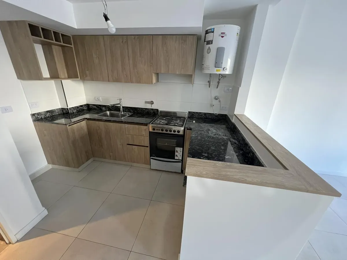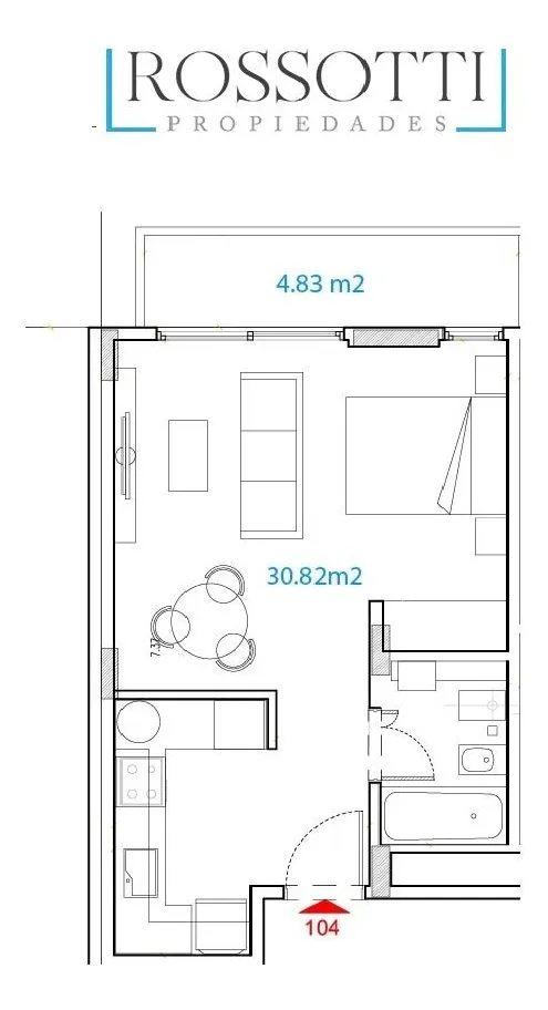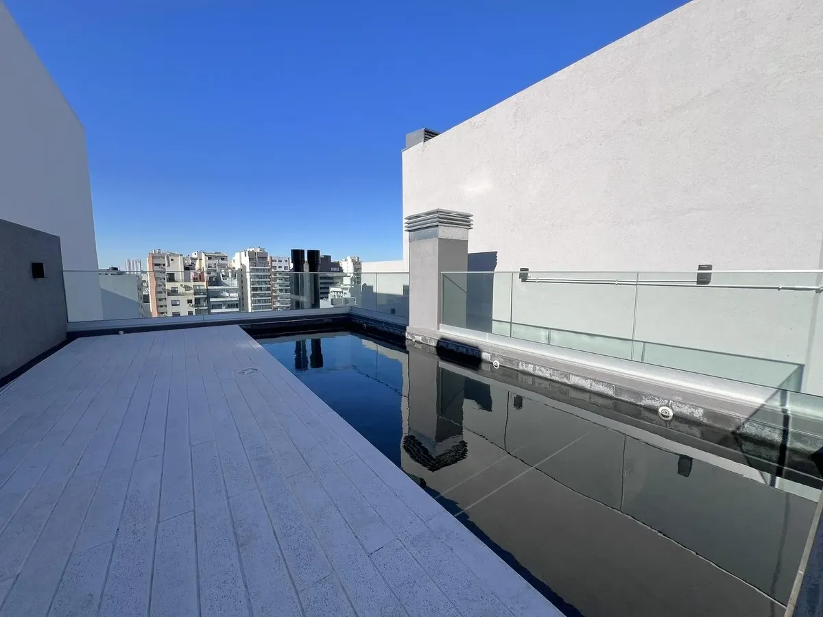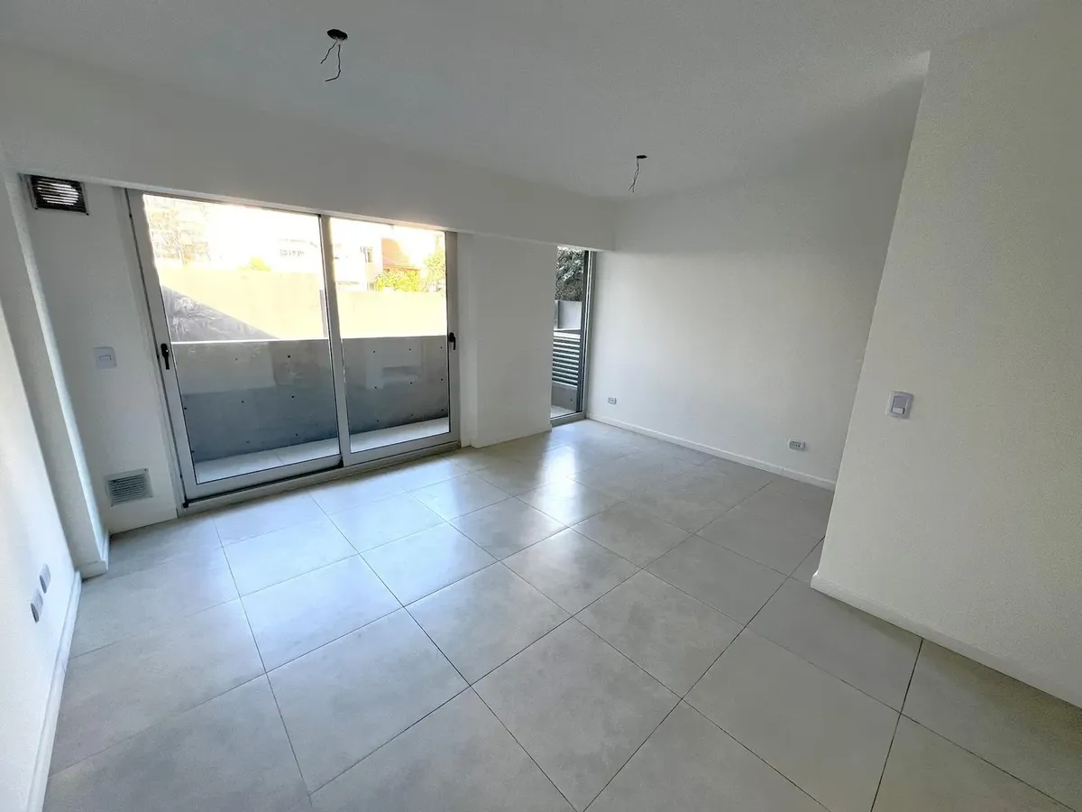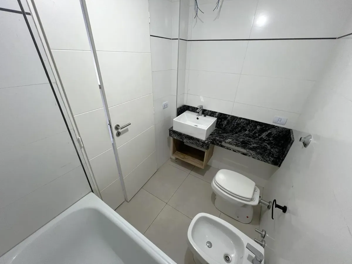 Квартира-студия в Flores, 1-й этаж, окна во двор/контра-фронт (балкон по всей длине). Ориентация на восток. В помещении плиточный пол, кухня в формате open space с газовой плитой и встроенной зоной для стирки, тёплая вода от электрического термонакопителя. Есть встроенный шкаф и ванная комната с ванной, сплит-кондиционер (холод/тепло). Окна из анодированного алюминия со стеклопакетами (DVH). В здании 2 лифта, один из них грузовой, рассчитан на 10 человек. На крыше: общая гостиная для жильцов (SU