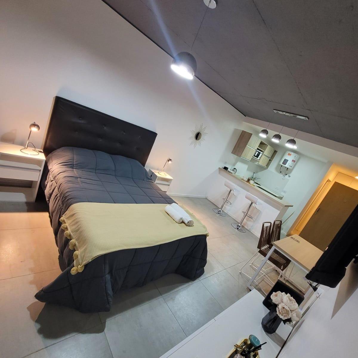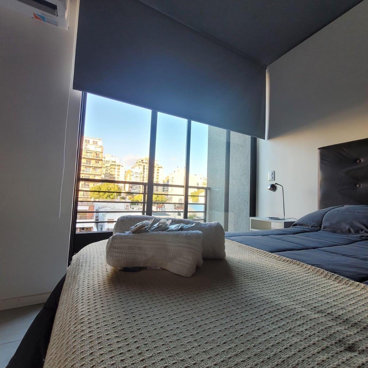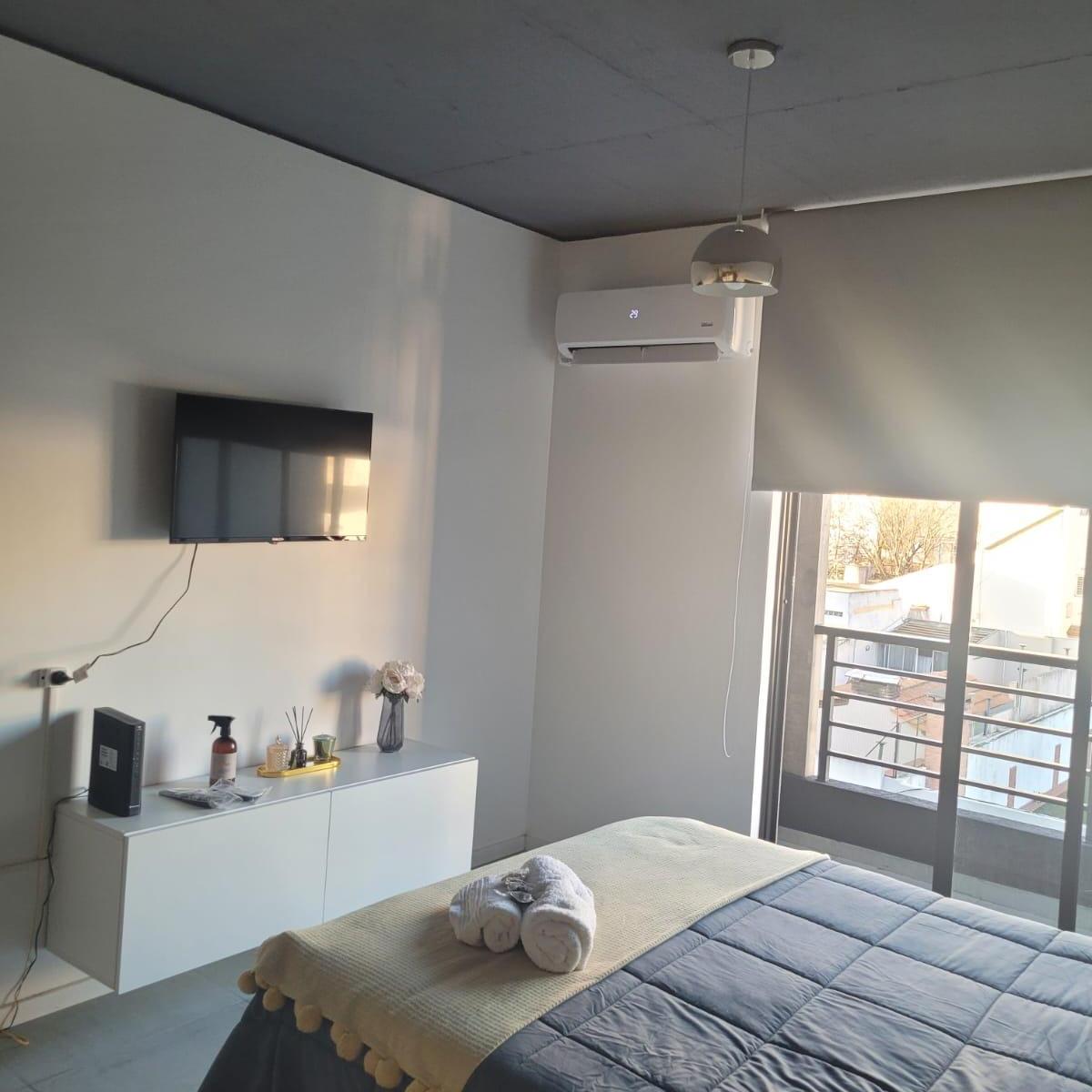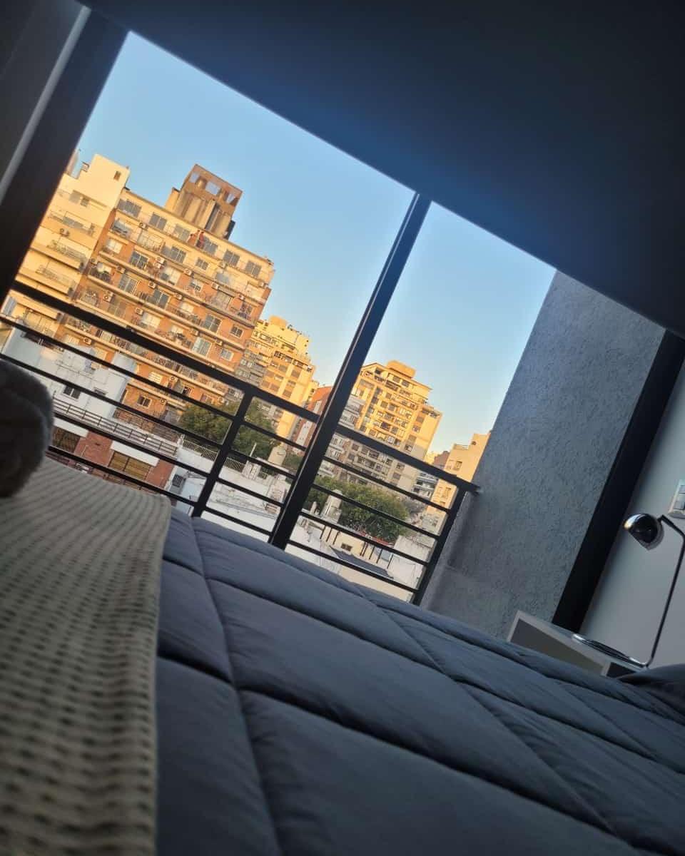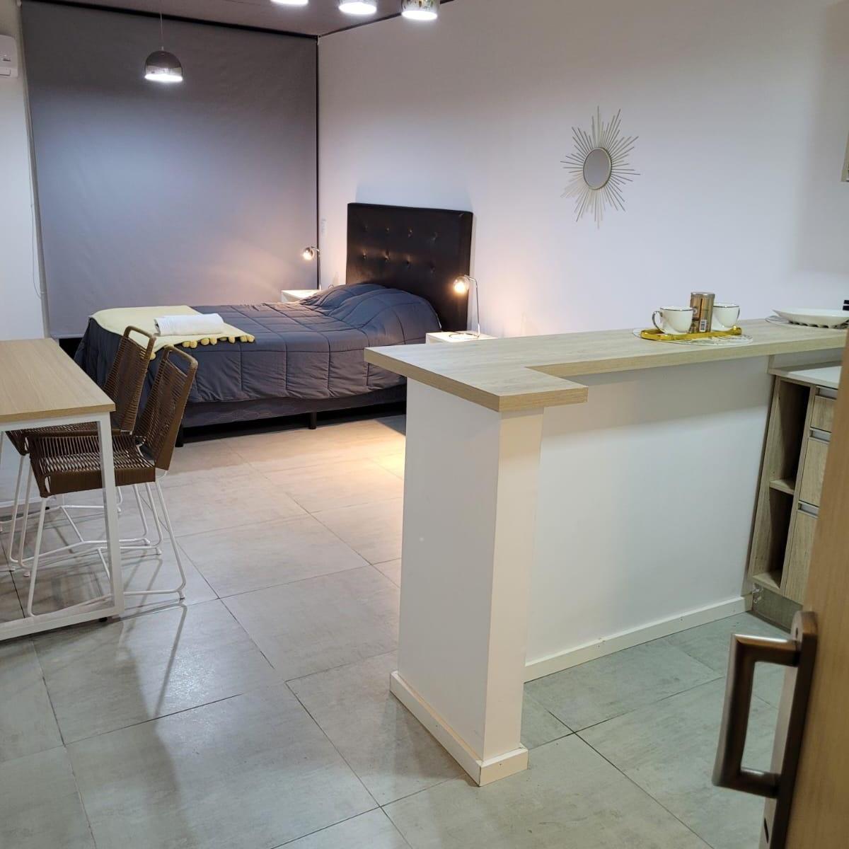 Квартира-студия площадью 1 комната в Flores, новая (никто не жил), с окнами во двор (contrafrente) и балконом с зоной гриля. Полностью меблирована и оборудована: установлен сплит (холод/тепло), микроволновая печь, фригобар, электрическая встраиваемая духовка и конфорка vitrofusión, телевизор Smart TV, предусмотрена барная стойка с 2 регулируемыми по высоте стульями и посуда. Встроенный шкаф с внутренним наполнением, роликовые шторы black out и напольные покрытия из керамогранита. В здании есть б