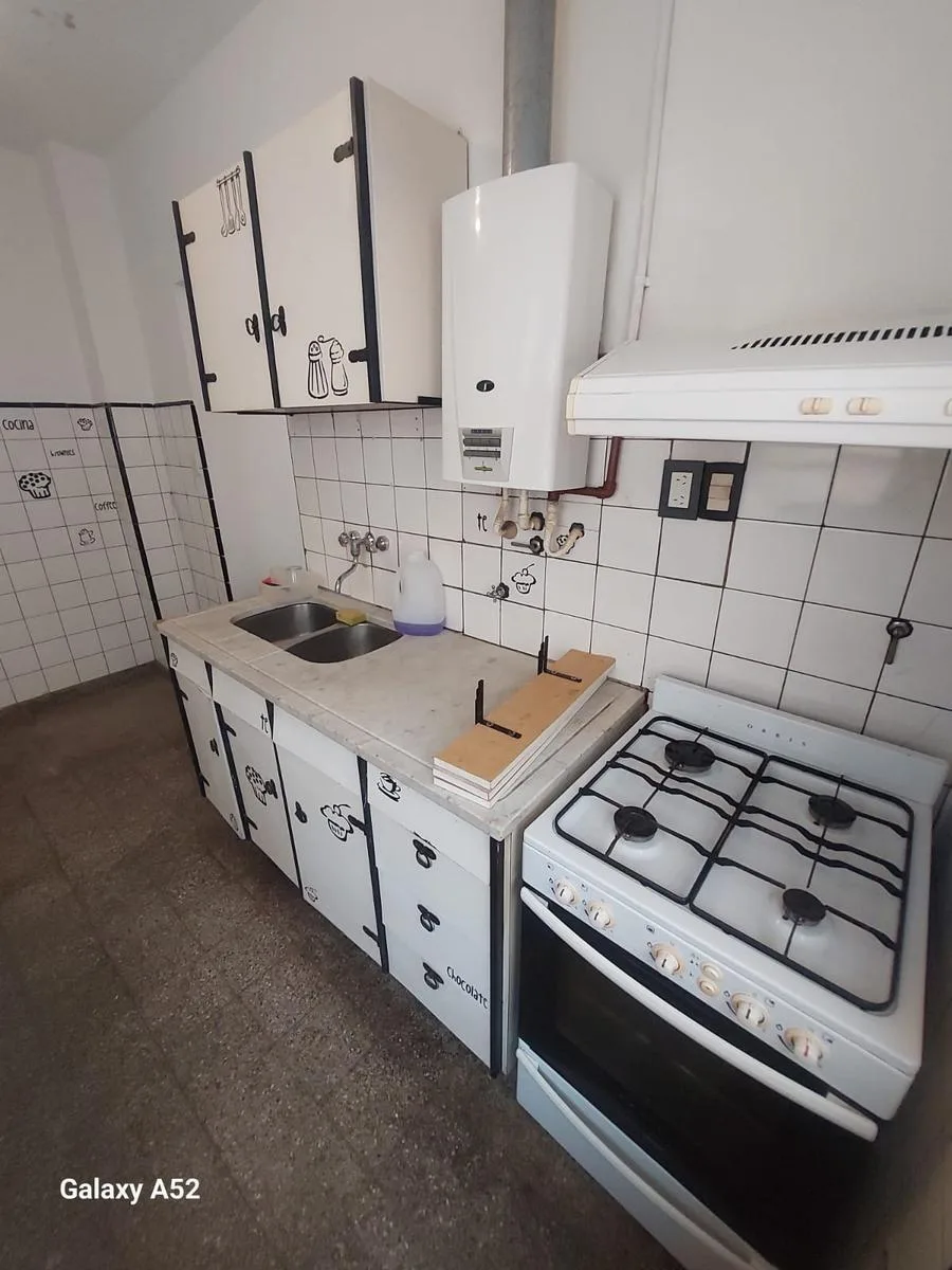 Квартира-студия в Flores. Площадь не указана. В студии есть кондиционер и шкаф-купе, отдельная кухня с столешницей, нижними и верхними шкафами. Кухня оборудована газовой духовкой. Из кухни есть выход на террасу. Ванная комната полная. Квартира расположена на третьем этаже, доступ по лестнице. На расстоянии 1,5 квартала от Av. Rivadavia, где работают магазины и проходят маршруты общественного транспорта. Договор на 2 года с повышениями раз в 4 месяца по индексу IPC.