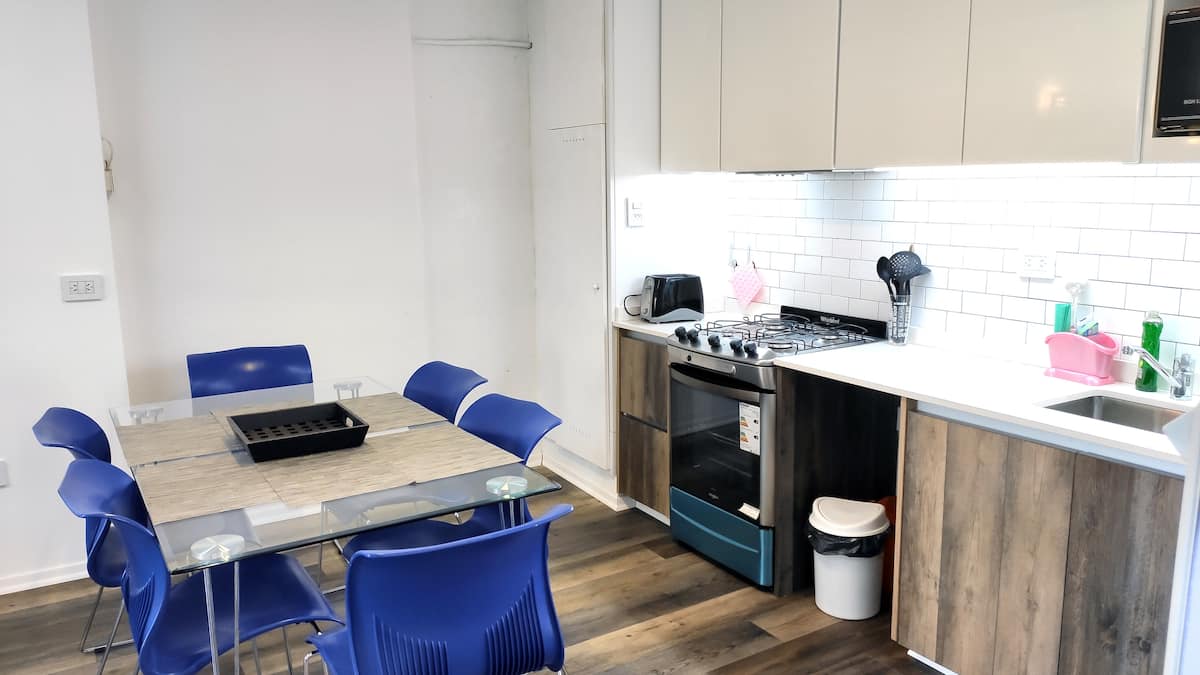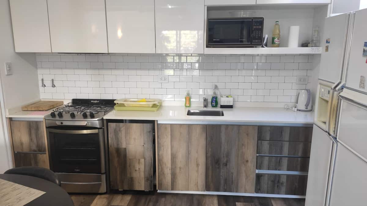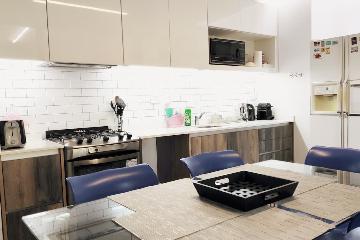 Квартира-студия площадью не указана, полуэтаж (PH) после ремонта. Окна на улицу, балкон со встроенной плитой и зоной гриля. Установлены электрические жалюзи, светодиодное освещение, кондиционер cold/heat во всех зонах, стеклянные покрытия полов, ванная с естественным освещением. Квартира с мебелью и оборудованием: газовая духовка, микроволновая печь, блендер, тостер, посуда и кастрюли для готовки, телевизор 50", кровать с матрасом. В здании круглосуточная охрана и видеонаблюдение. Wi‑Fi (высокос