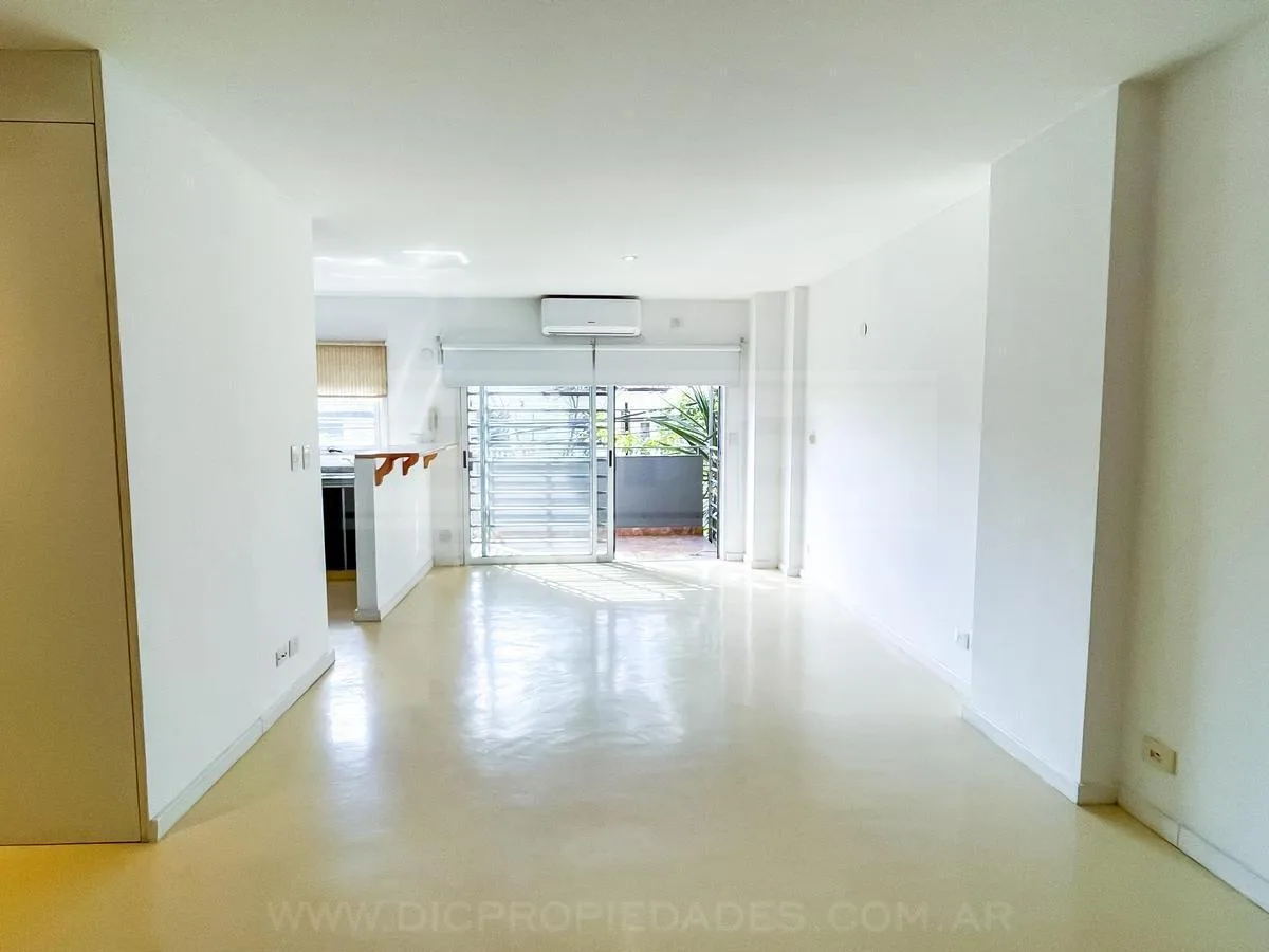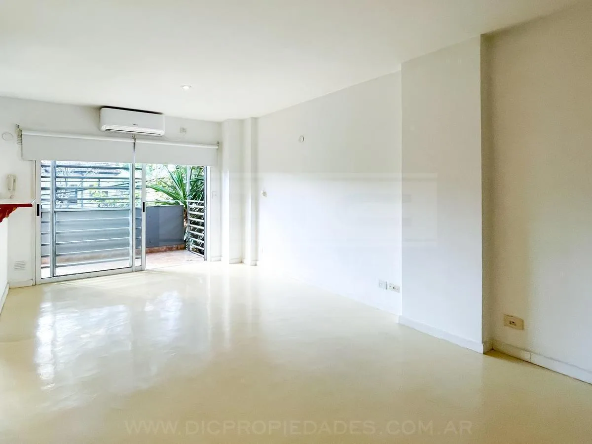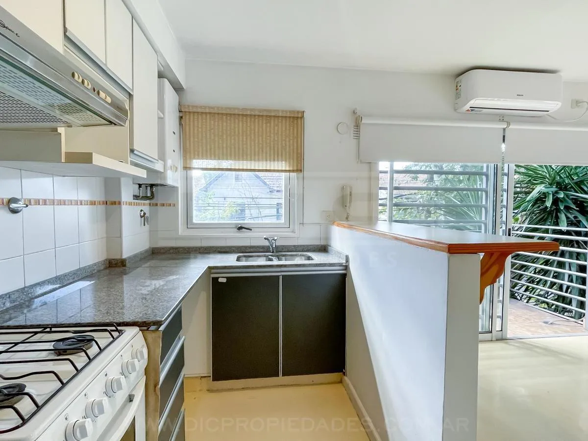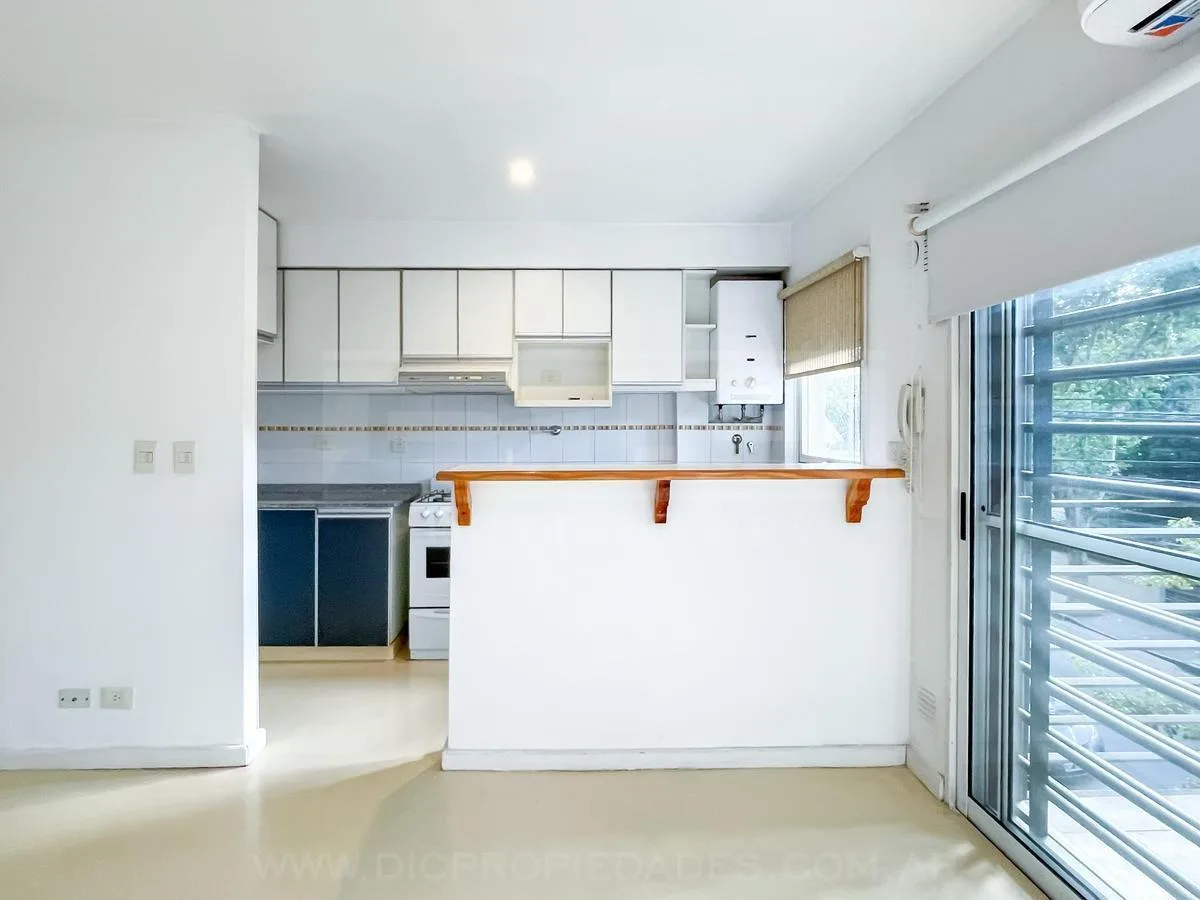 Квартира-студия площадью 40 m² в Florida. Пространство объединяет гостиную и обеденную зону, кухня с барной стойкой. Полноценная ванная и большой шкаф от пола до потолка. Установлены кондиционер (холод/тепло) и шторы black out; есть выход на балкон с открытым видом на улицу Melo, окружённую зеленью. В здании предусмотрены охрана 24 часа, piscina с солярием, зона гриля для общего пользования, SUM, полностью оборудованный, и laundry. Рядом с Estación Florida (Tren Mitre), быстрый выезд на Panameri