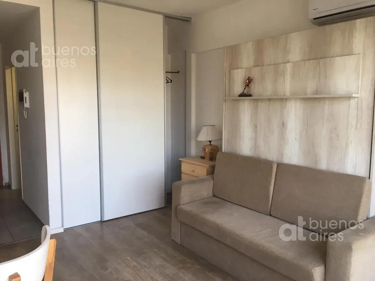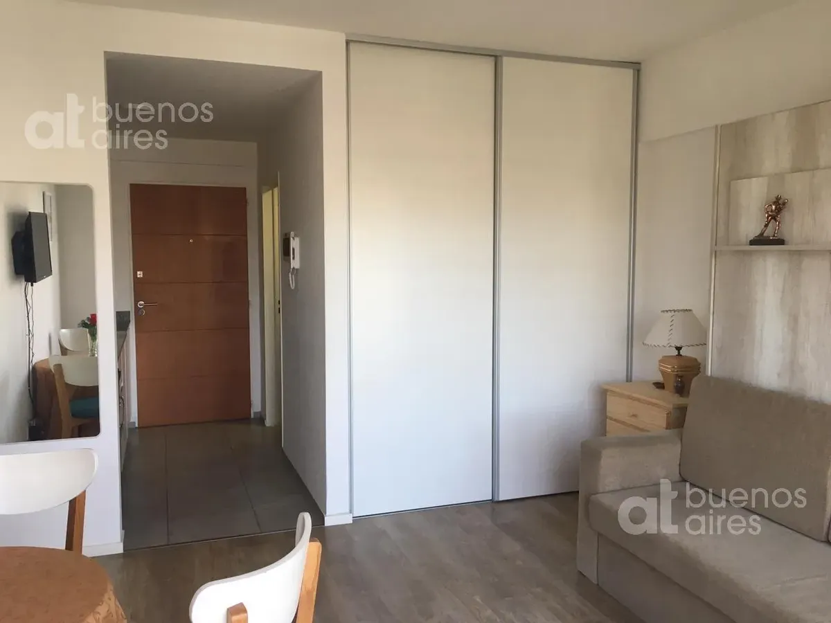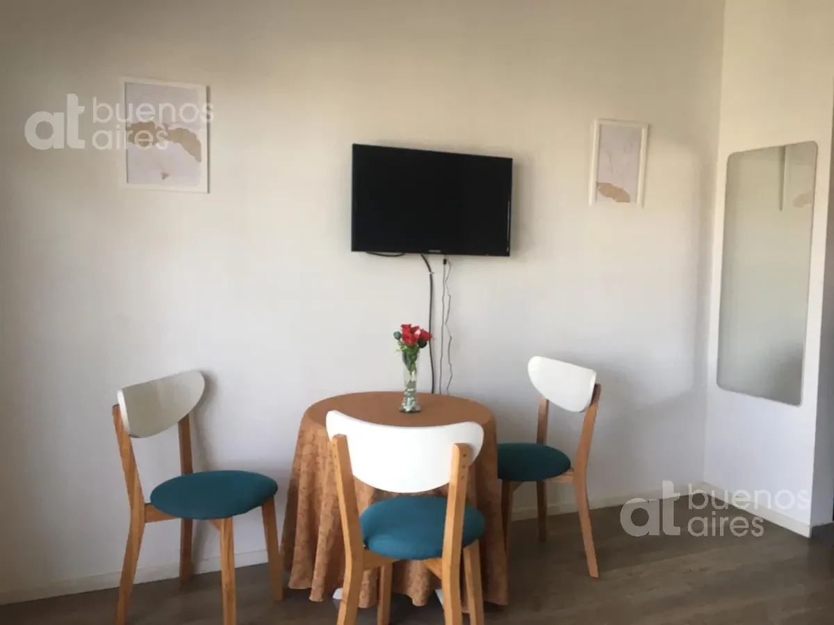 Квартира-студия в La Boca. Площадь не указана. Окна выходят на балкон; установлена раскладная кровать (cama rebatible), есть полноценная ванная комната. В здании предусмотрены бассейн и laundry. В объявлении указано, что стоимость включает luz, agua e internet. Для въезда требуются 1 месяц авансом, 1 месяц депозитом и административные расходы.