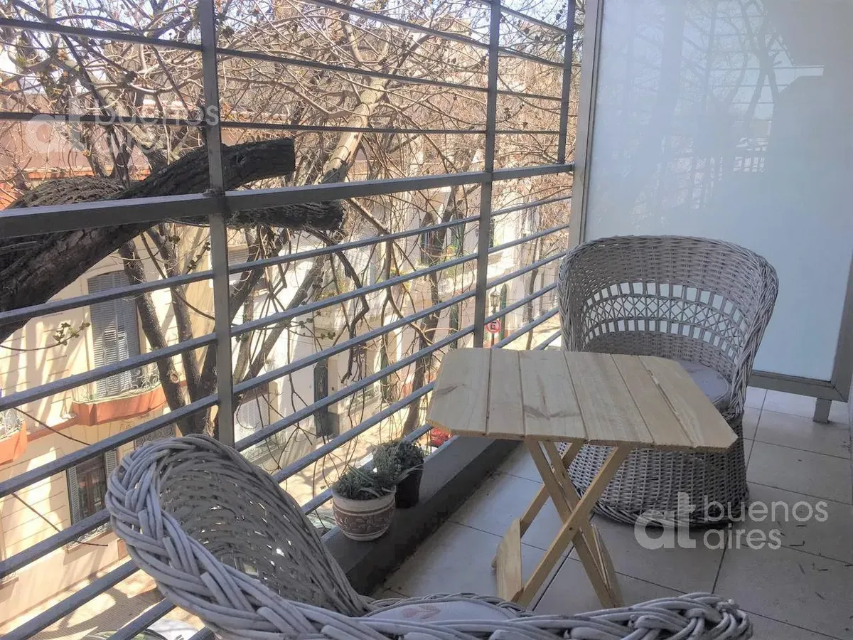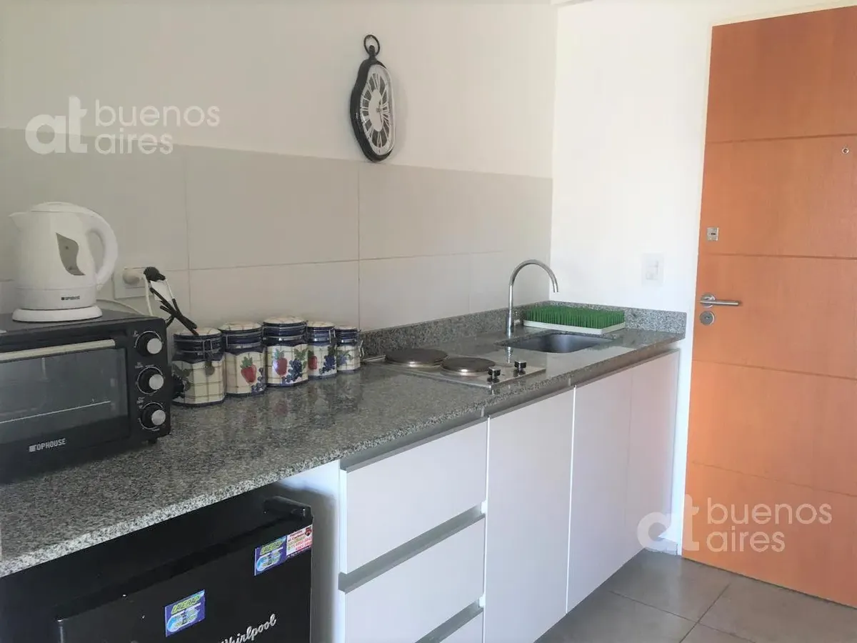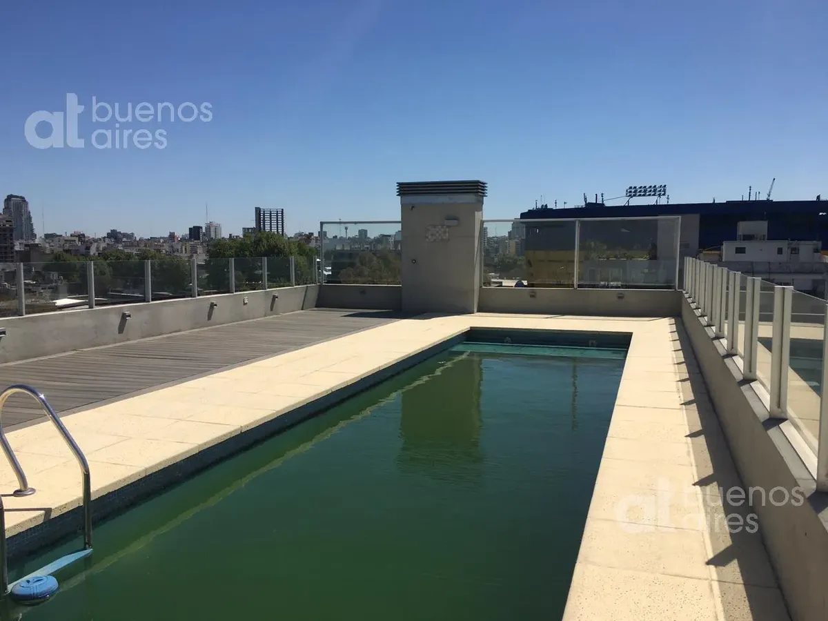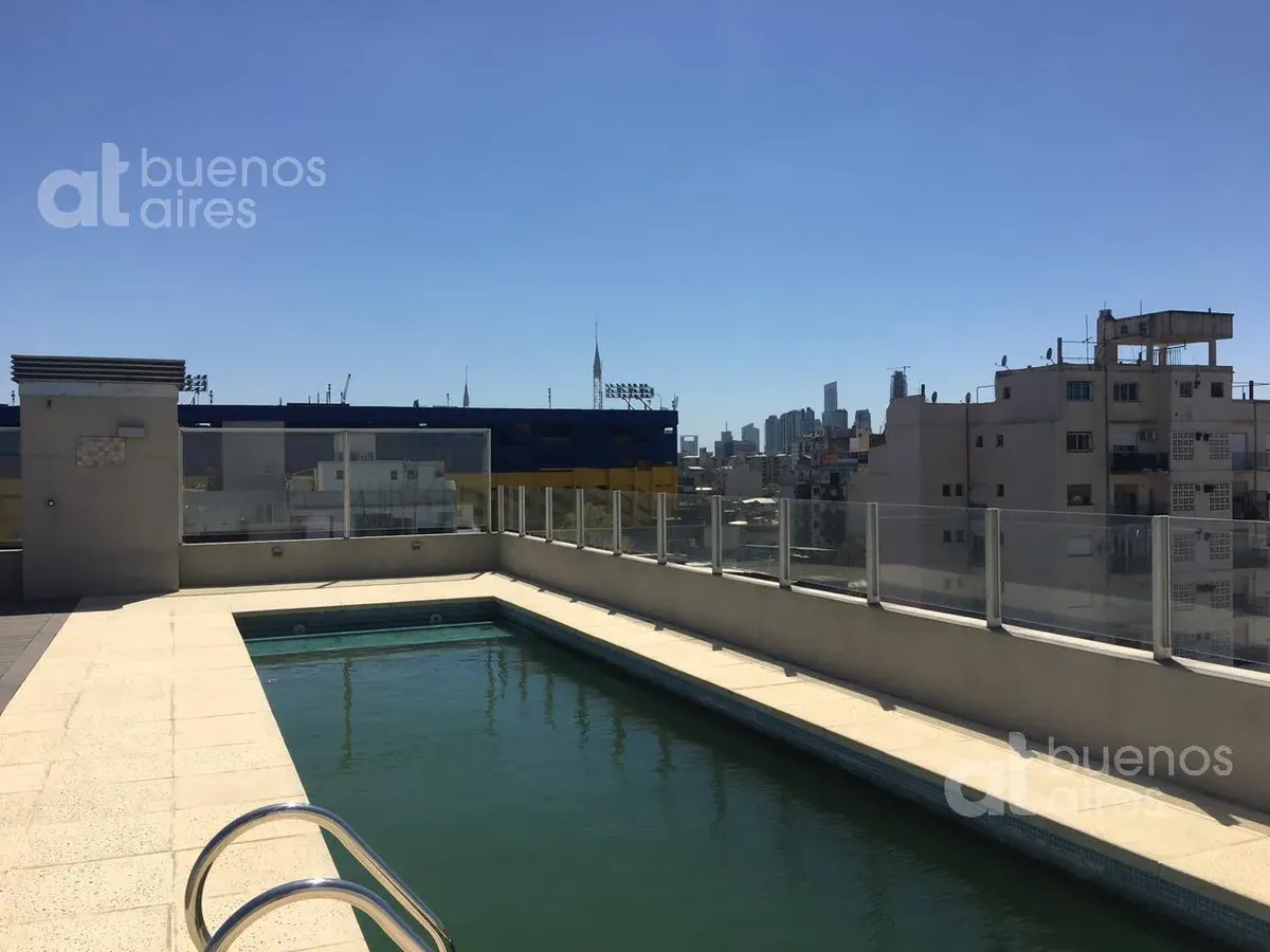 Квартира-студия в La Boca. Площадь не указана. Окна выходят на балкон; установлена раскладная кровать (cama rebatible), есть полноценная ванная комната. В здании предусмотрены бассейн и laundry. В объявлении указано, что стоимость включает luz, agua e internet. Для въезда требуются 1 месяц авансом, 1 месяц депозитом и административные расходы.