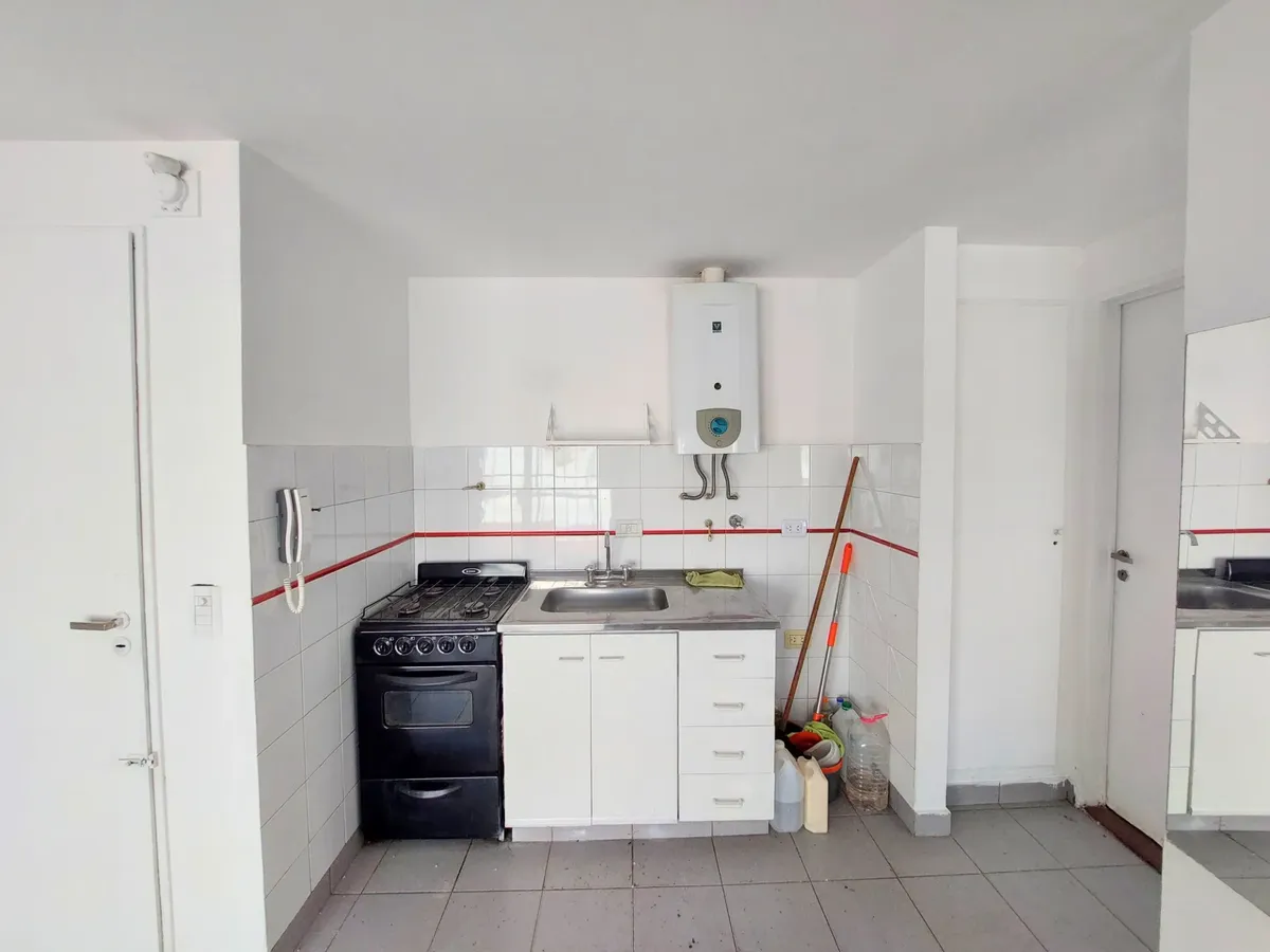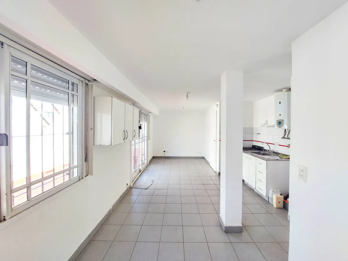 Квартира-студия в аренду в центре Ramos Mejía. Площадь и этаж не указаны. Кухня с тумбами под столешницей и газовой плитой, есть кладовая (baulera) и отдельная полноценная ванная комната. Коммунальные платежи здания включают услугу умеренного потребления электроэнергии; предусмотрен выход на общую террасу. Допускаются домашние животные. Требуется гарантия владельца или seguro de caución (FiNAER).