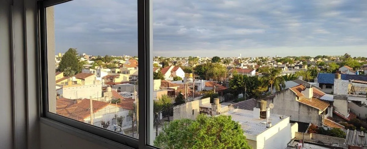 Квартира-студия на 2° B в Haedo, Ayacucho 217, площадью не указана. Окна на улицу, большое панорамное остекление. Кухня интегрирована, полноценная ванная. В здании около 30 лет с момента постройки; есть терраса с зоной гриля. Доступна с мая 2026 года.