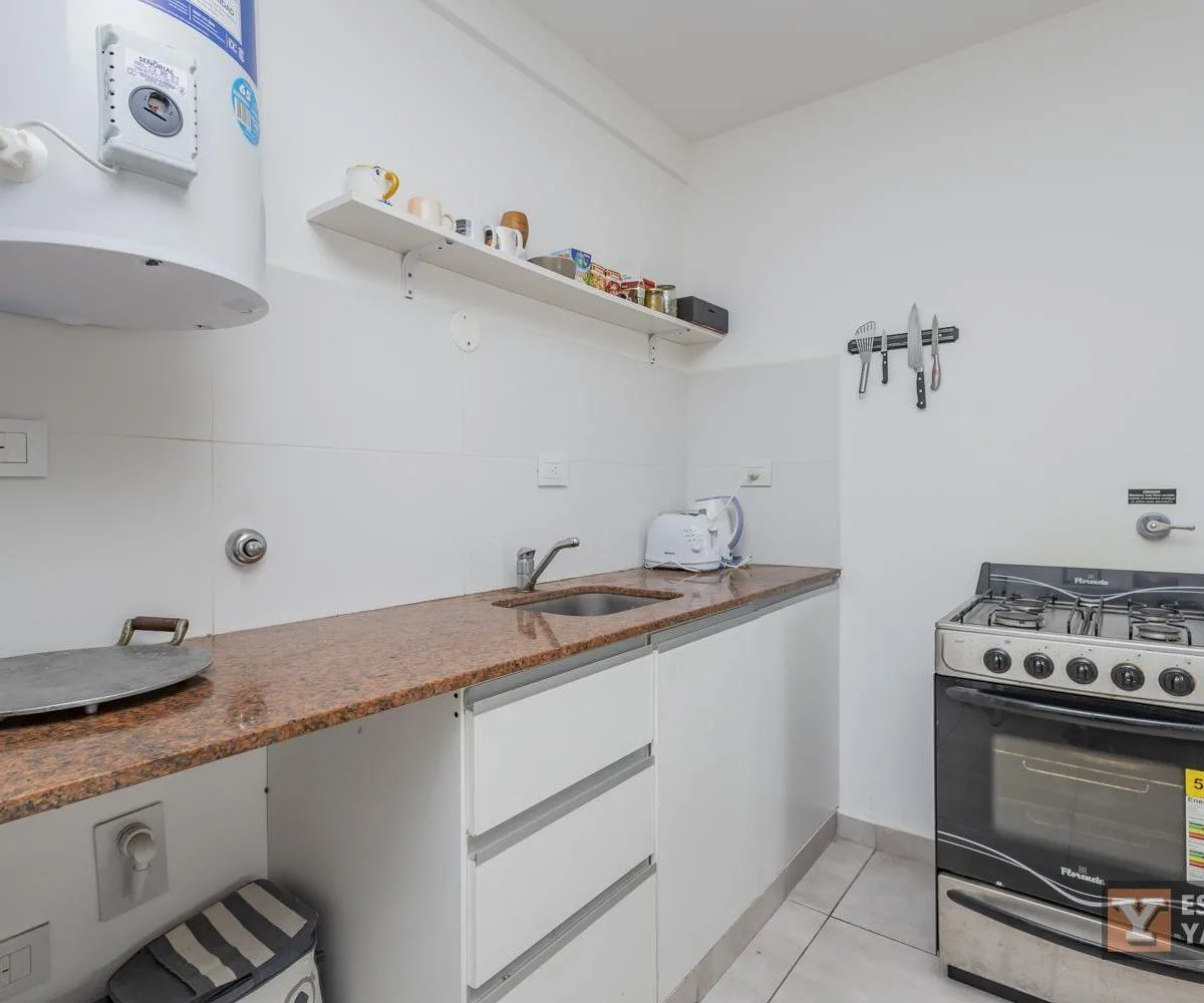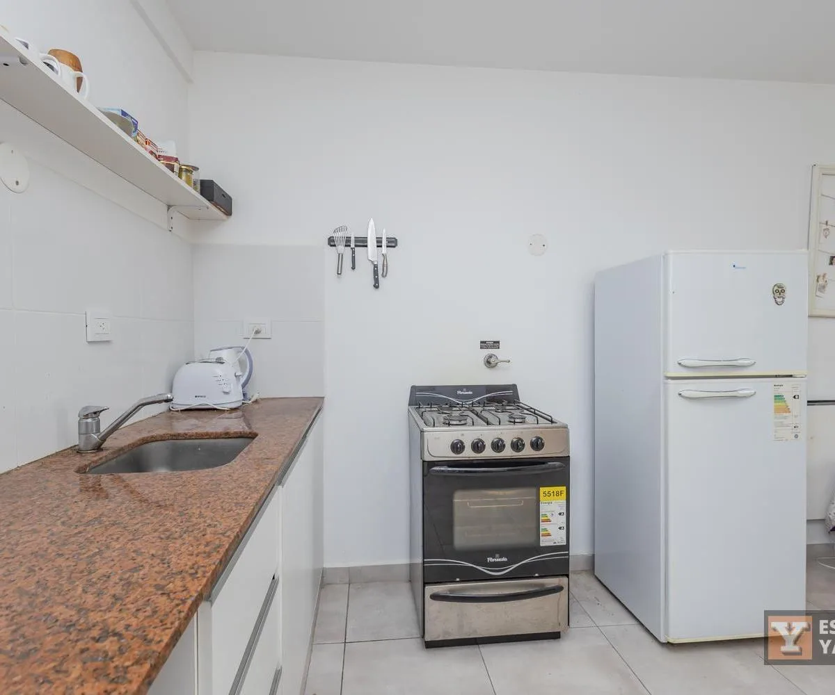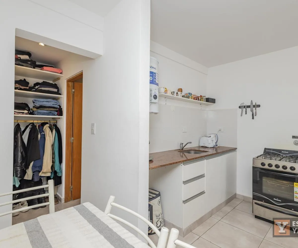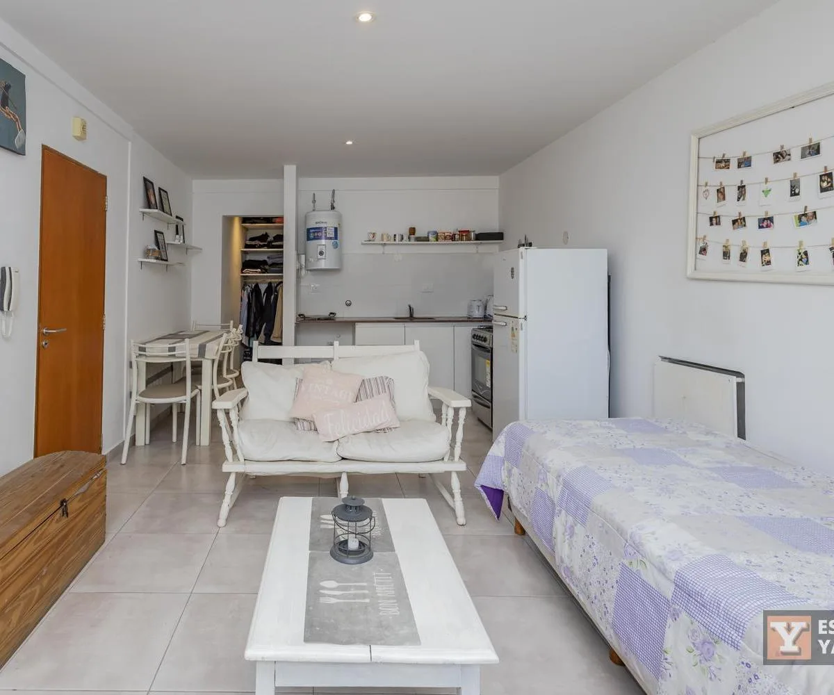 Квартира-студия площадью 38 m² на цокольном уровне с лифтом, окна во двор. На общей площади размещены интегрированная кухня с мебелью под столешницей и встроенный шкаф. Ванная комната полностью оборудована, установлены стеклопакеты с герметичным двойным остеклением. Адрес: Calle 39 между 11 y 12, La Plata.