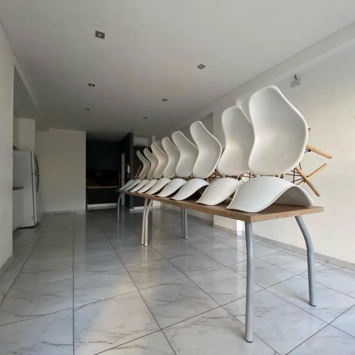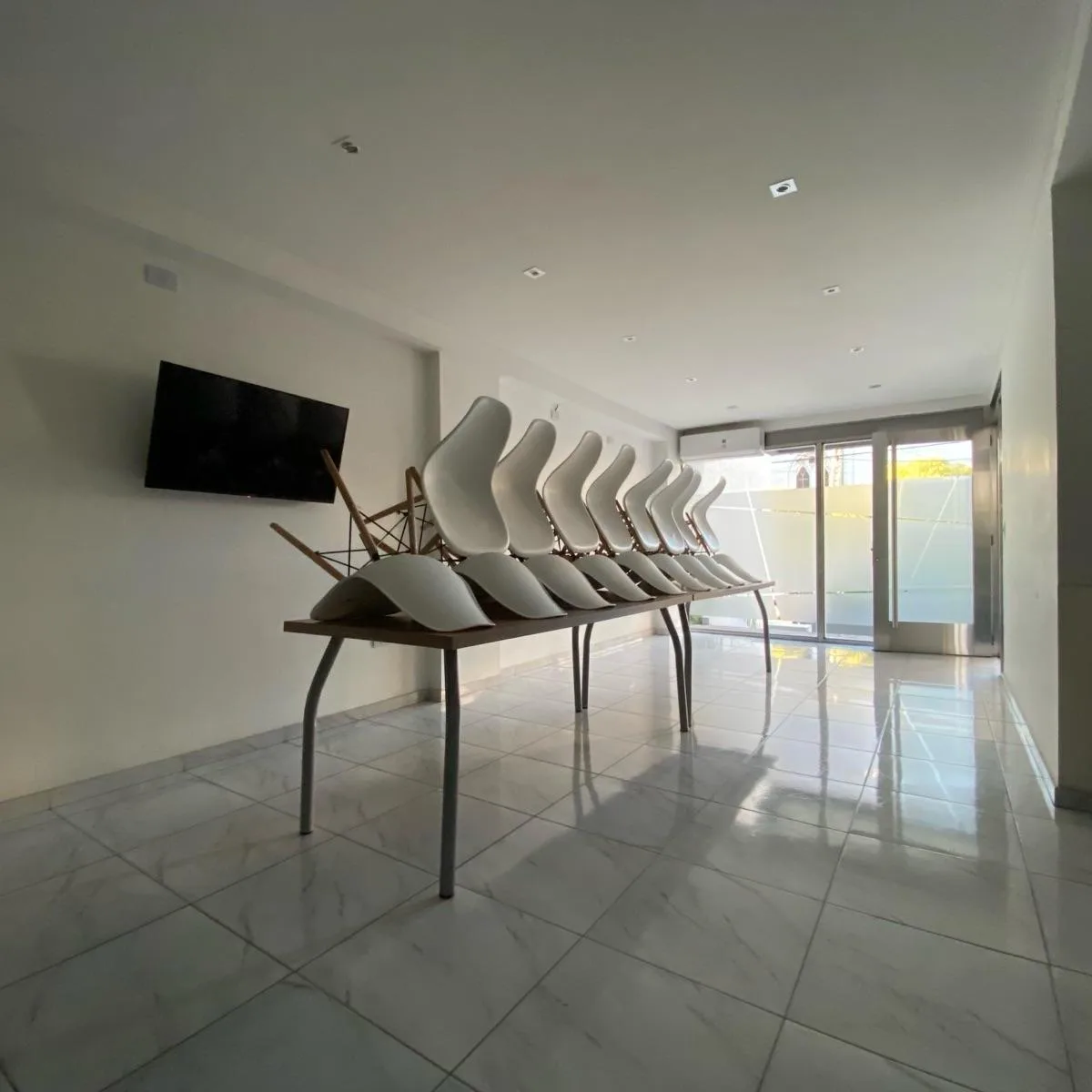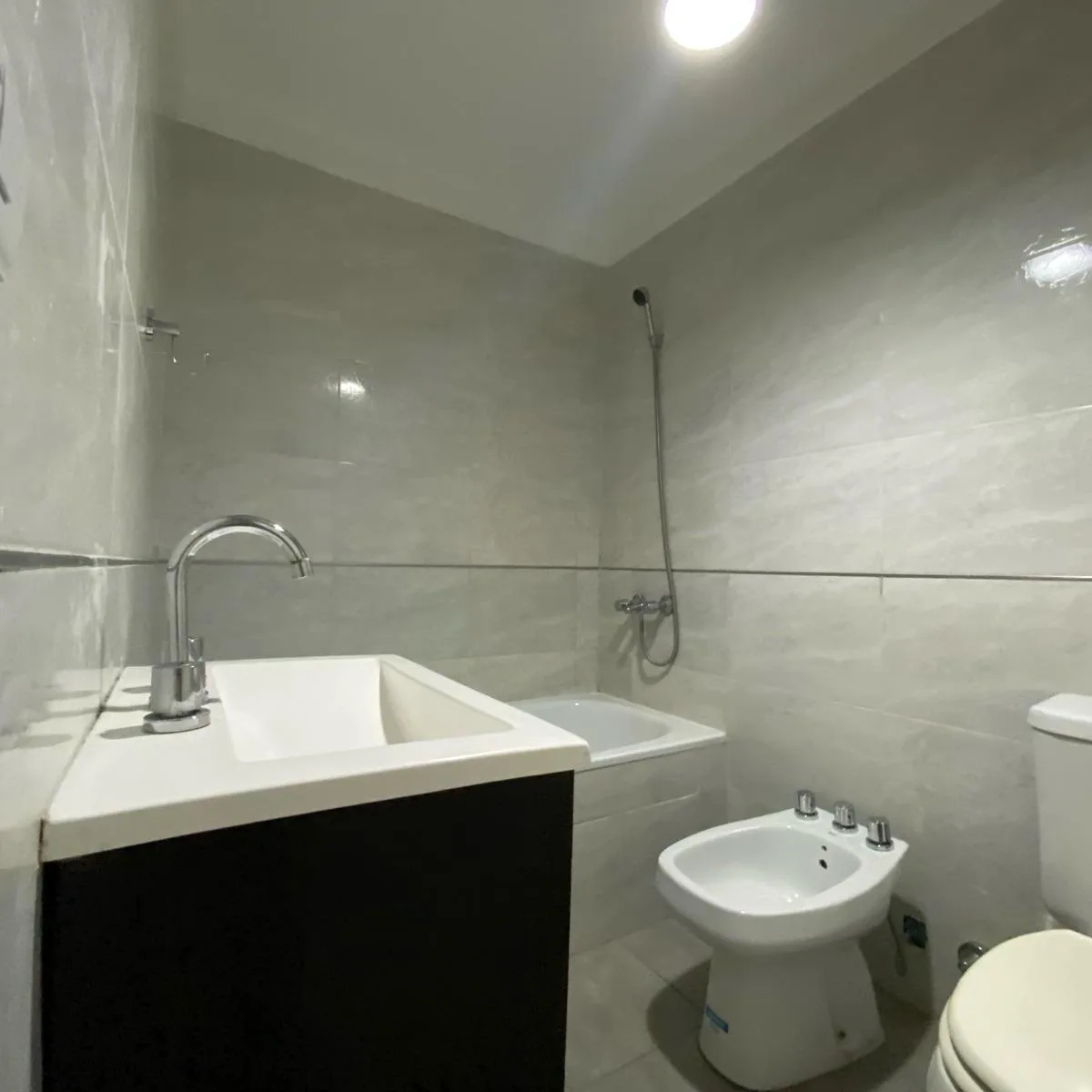 Квартира-студия 1-го этажа с окнами на улицу в Lanús Oeste, в ней один объединённый зал с балконом. Кухня оборудована нижними шкафами и навесными полками, есть кухонная плита и электрические конфорки. Ванная комната с ванной. В здании работает SUM на первом (цокольном) этаже. Аренда указана вместе с коммунальными платежами здания, услугами и TSG.