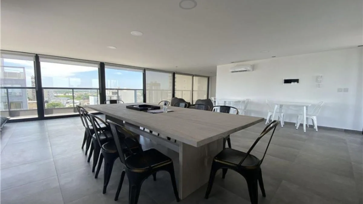Квартира-студия площадью не указана расположена на 7-м этаже, окна во двор. При входе предусмотрена ванная комната, далее зона кухни с навесными и нижними шкафами из silestone, варочная панель на 2 конфорки vitrocerámico и электрическая духовка. В помещении установлены кондиционер (холод/тепло) и система горячего водоснабжения от центрального котла. В здании 2 лифта, на 11-м этаже предусмотрены бассейн и солярий, а также прачечная с стиральной и сушильной машинами для жильцов без доплат.