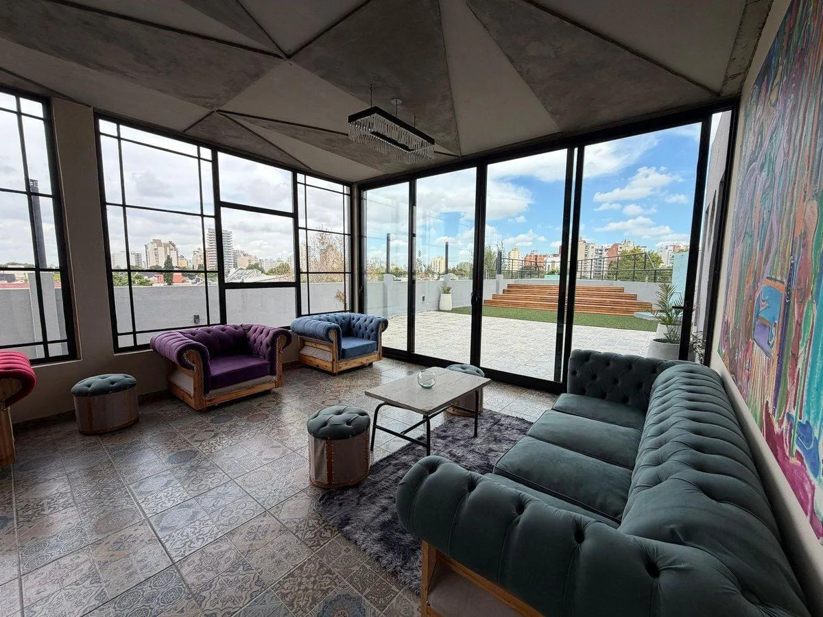 Квартира-студия с антресолью (формат дуплекса) в Lanús, новая (никто не жил). Кухня отделена и оборудована мебелью верхнего и нижнего яруса; полноценная ванная комната. Установлен кондиционер. Антресоль 3,30 x 2,60, высота около 1,66. В здании есть зона коворкинга, бассейн, зона гриля и прачечная. Коммунальные платежи здания не указаны.