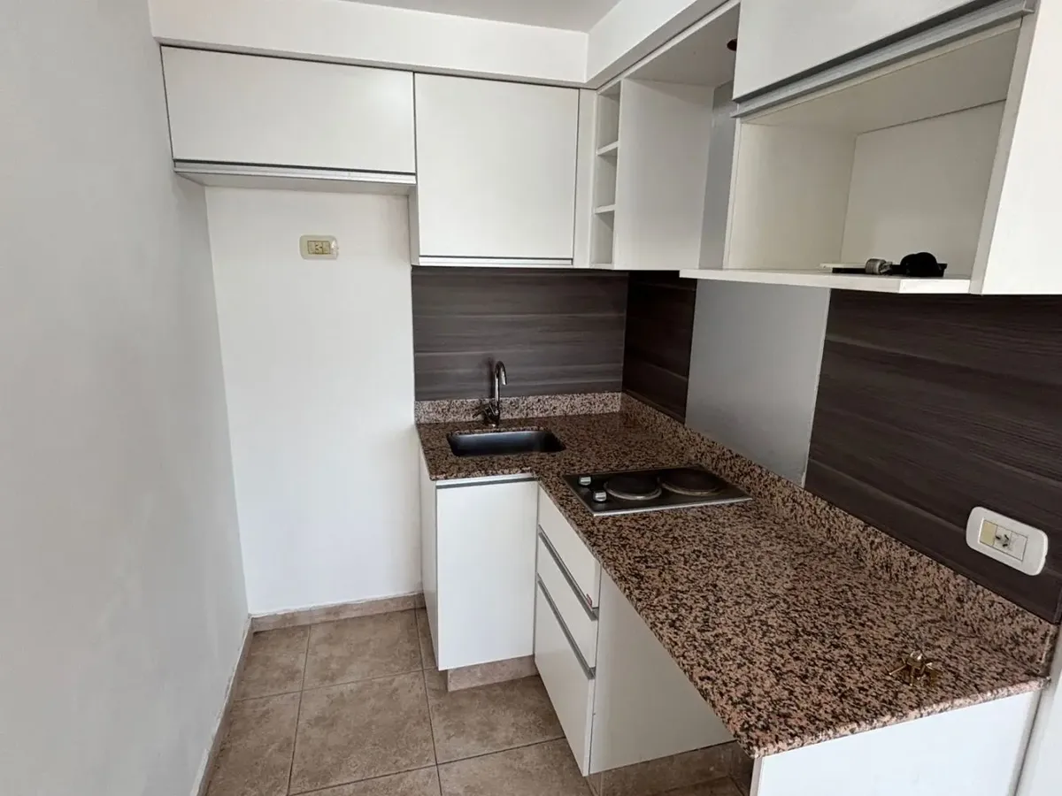 Квартира-студия в Lomas de Zamora. Площадь не указана; окна на улицу, с балконом. Встроенный шкаф из меламина; кухня с верхними и нижними тумбами, электрическая варочная панель на 2 конфорки, предусмотрены подключения для стиральной машины. Полноценная ванная комната. В здании предусмотрены центральная подача горячей воды, отопление радиаторами во всех помещениях и общая гостиная для жильцов на последнем этаже. Коммунальные платежи здания включают Edesur, AYSA, Metrogas и муниципальный налог.