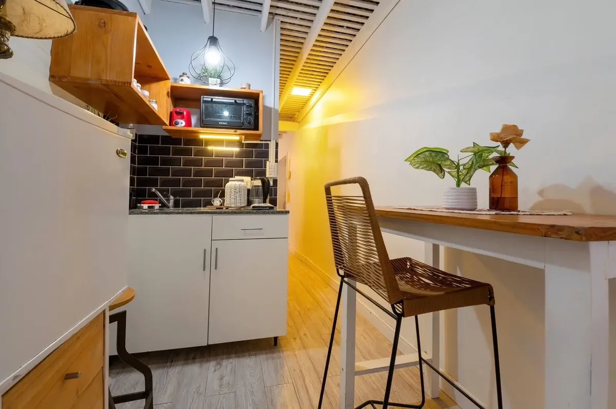 Квартира-студия площадью 32 m² в Banfield, Lomas de Zamora. 30 m² крытых и 2 m² полукрытых, квартира находится на первом этаже и имеет небольшой участок зелени. В помещении есть кондиционер, интернет и WiFi, указаны подключение к электричеству и природному газу. Оплата производится переводом; к ежедневной стоимости добавляется разовый сбор за уборку и возвращаемый залог-страховка аренды при выезде. Заезд с 14:00 до 19:00, выезд до 12:00.