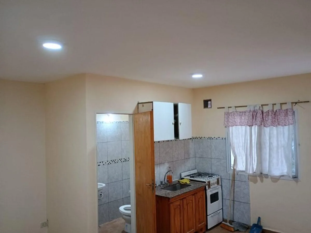 Квартира-студия на первом этаже с двориком, Barrio La Perla, Temperley. Студия площадью в описании не указана, окна на двор. Есть оборудованная кухня, полноценная ванная комната и горячая вода от электрического термобойлера. Плита работает на баллонном газе. Аренда на 2 года; обновление раз в полгода по IPC. Коммунальные платежи здания отсутствуют, расходы на содержание разделяются между остальными квартирами.