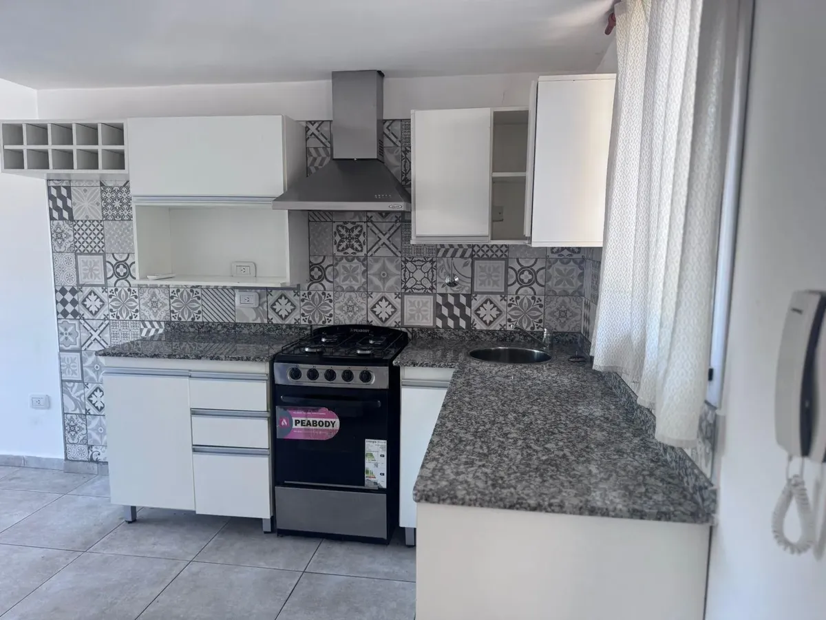 Квартира-студия в Lomas de Zamora с кухней, совмещённой с гостиной, и ванной комнатой. Площадь и этаж не указаны. В квартире есть кондиционер холод/тепло и балкон; полы керамические, кухня укомплектована мебелью нижнего и верхнего ярусов. Также предусмотрен душ, биде-ванитори и вытяжка. Парковочное место под открытым небом с автоматическими воротами; в здании есть два общих террасных пространства и лифт. Коммунальные платежи здания включают услуги света, Municipal и ARBA; газ и страховка от пожа