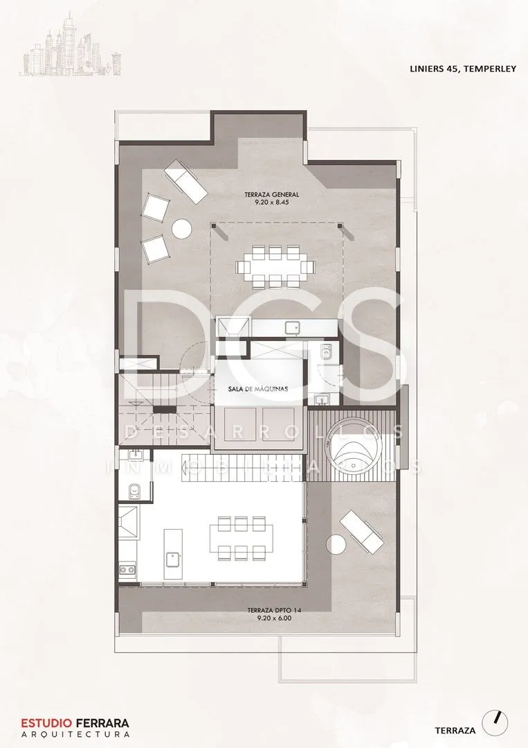 Квартира-студия площадью 29,10 m² с балконом 3 m², окна во двор (contrafrente). Ориентация на север. В квартире есть полностью оборудованная кухня с электрическим конфорочным столом (anafe) и электрической духовкой, ванная комната с душевой кабиной, установлен кондиционер холод/тепло, установлены шторы black-out. В здании предусмотрены SUM, тренажёрный зал, системы видеонаблюдения (в процессе), электромагнитный замок и резервный генератор (в процессе); указаны центральное горячее водоснабжение,