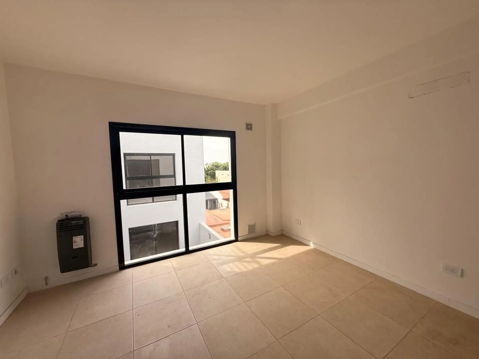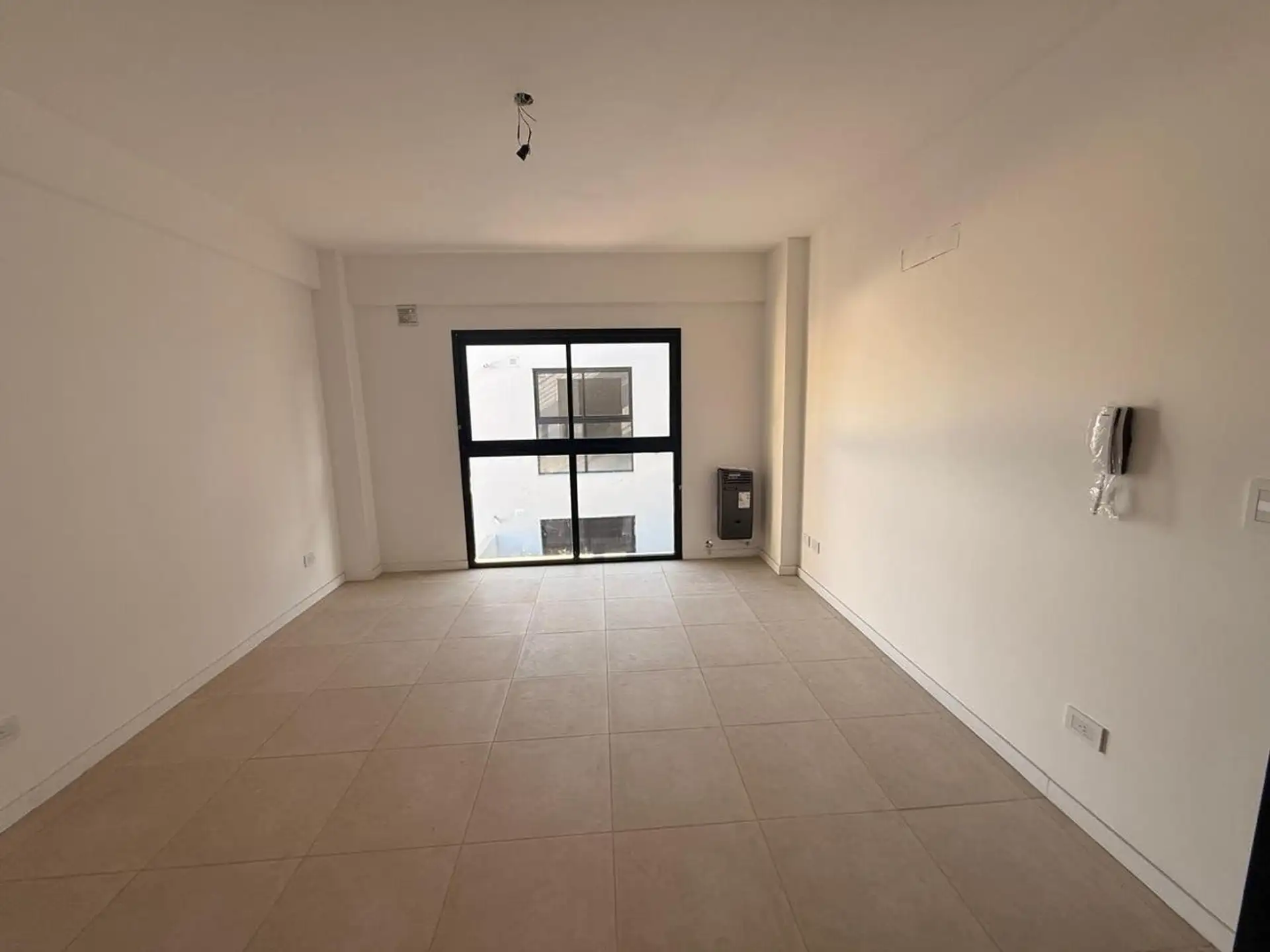 Квартира-студия в Lomas de Zamora, новая (никто не жил), с внутренним расположением. Есть вход в гостиную-столовую с интегрированной кухней, мебель под столешницей и навесным шкафом, столешница из серого гранита Mara, мойка из нержавеющей стали, газовая плита. Центральное горячее водоснабжение и отопление на газовых конвекторах с системой tiro balanceado Volcán; напольное покрытие — керамогранит, окна — анодированный алюминий, установлено большое панорамное окно с чёрными алюминиевыми рамами. По
