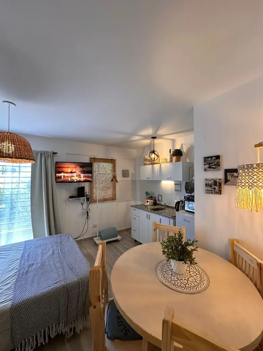 Квартира-студия в аренду на временный срок. В помещении есть центральное водоснабжение, природный газ, электричество и WiFi, а также кондиционер. В студии установлен полный санузел, планировка ориентирована на естественное освещение.