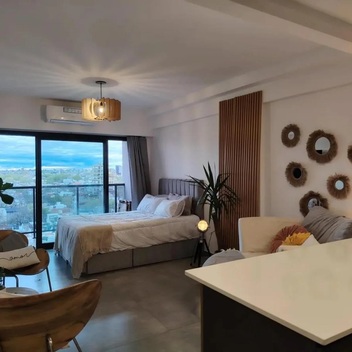 Квартира-студия площадью около 38 m² в Villa Luro, на высоком этаже, окна во двор. Есть балкон. Кухня оборудована верхними и нижними шкафами, в основном помещении предусмотрены встроенные места хранения. В квартире 1 полноценная ванная комната; отопление и кондиционирование не указаны. Лифт работает; ориентировка на юг. Указано 35 m² крытых.