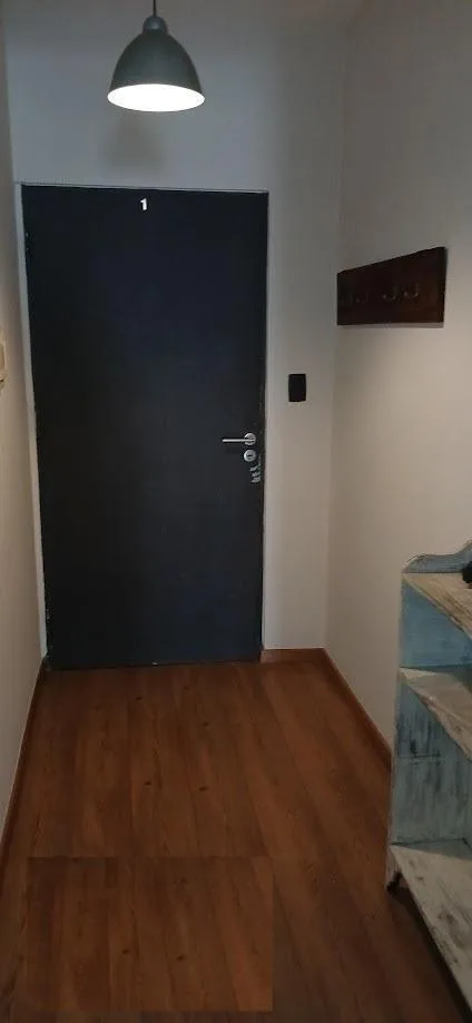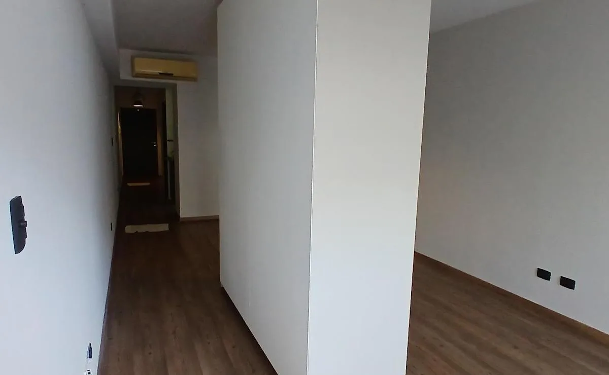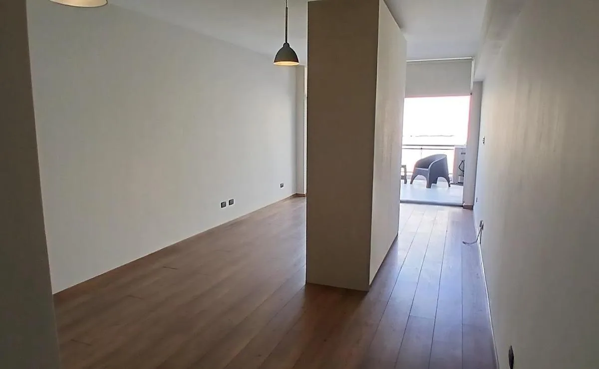Квартира-студия на 3-м этаже в доме по улице Chile, окна во двор. В планировке есть входной холл, большая комната с возможностью зонирования, выход на балкон-террасу и отдельная ванная. Отдельная кухня с местом под стиральную машину и холодильником. Указано, что квартира недавно покрашена; данные о площади и размерах носят ориентировочный характер и подлежат проверке по документам.