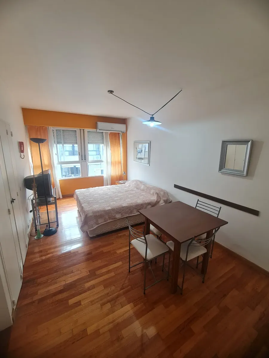 Квартира-студия площадью 28 m² в многоэтажном доме в Monserrat, с открытым видом на город. Пространство объединяет зону отдыха, обеденную зону и хранение; встроенные шкафы и большие окна. Кухня с навесными и нижними модулями, варочной панелью и местом под холодильник. Ванная с ванной, умывальником, унитазом и биде, внутри установлен сплит-кондиционер. Столярные полы из дерева и обстановка уже на месте; рядом Av de Mayo, в половине квартала от Av de Mayo и рядом с Palacio Barolo.