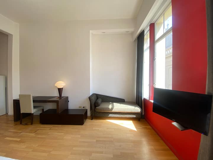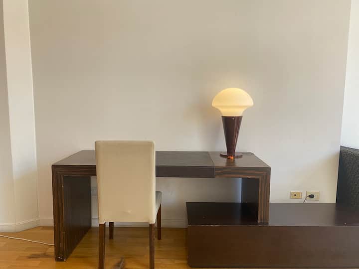 Квартира-лофт в историческом здании с охранным статусом города Buenos Aires, бывший Hotel Moreno. Площадь 44 m²; рассчитана максимум на 2 человека с двуспальной кроватью. Окна выходят на район Monserrat: здание находится в 2 кварталах от Plaza de Mayo/Casa Rosada и в полквартала от Calle Defense, где по воскресеньям проходит Feria de San Telmo. Вход в здание осуществляется через приложение на мобильном телефоне.