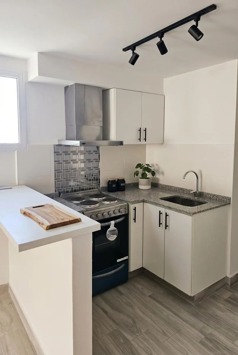 Квартира-студия новая (никто не жил) в Monserrat. Балкон с окнами во двор, в помещении предусмотрен дополнительный стол (письменный стол). Кухня с мебелью: нижние и верхние шкафы, барная стойка, духовка и конфорки; встроенные шкафы с внутренним наполнением. Установлены центральные службы, предусмотрена предподготовка под сплит; предусмотрено подключение стиральной машины на балконе. В здании есть gym, общая гостиная для жильцов (SUM), зона гриля и джакузи. В описании указано (для продажи), что в