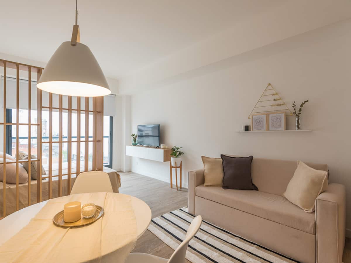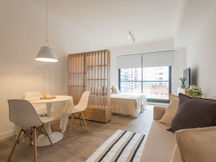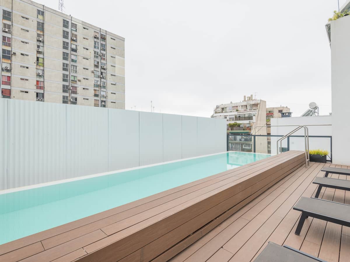 Квартира-студия в Congreso, Buenos Aires. Предусмотрено размещение до 3 человек: две односпальные кровати, которые сдвигаются в двуспальную, диван-кровать. Кухня с обеденным столом и стульями, отдельная ванная с ванной. В здании есть бассейн, стиральная машина с оплатой монетами, общая гостиная для жильцов и зона гриля; доступ к ним предоставляется за дополнительную плату и по предварительной записи.