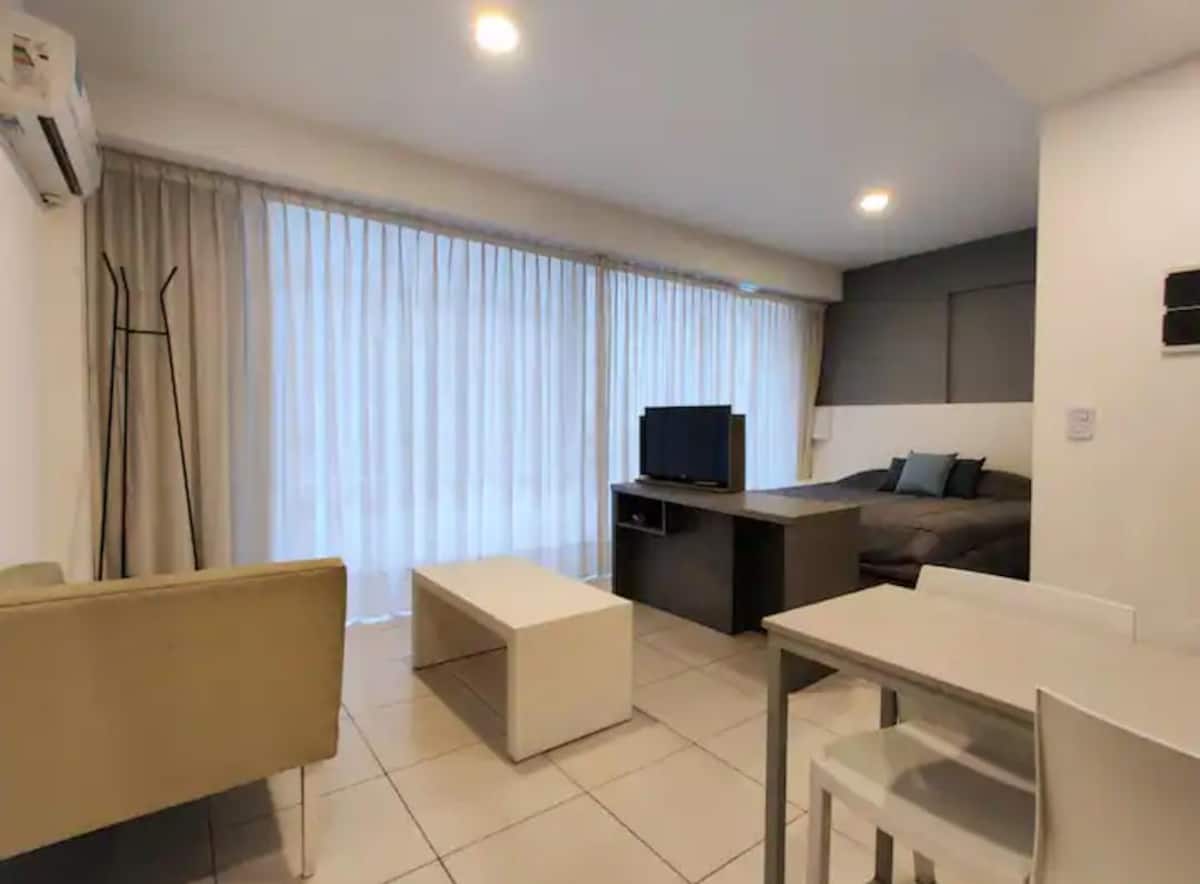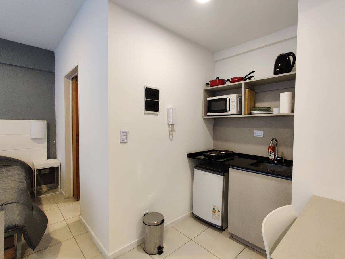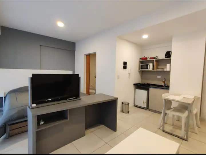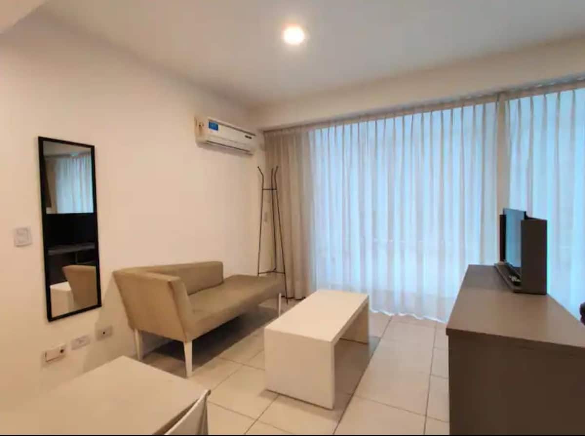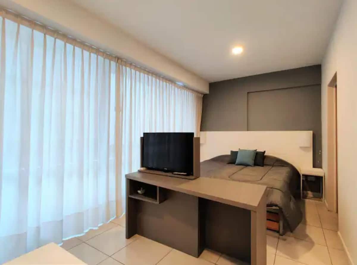 Квартира-студия в San Telmo в современном здании, полностью меблирована и оборудована. В комнате широкие окна. Кухня-миникухня с оборудованием, отдельная ванная с ванной, кровать Queen, LED-телевизор и кондиционер. В здании есть бассейн, работает консьерж и охрана; постельное бельё и полотенца включены.