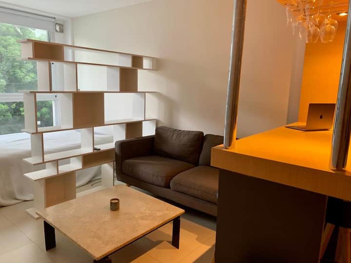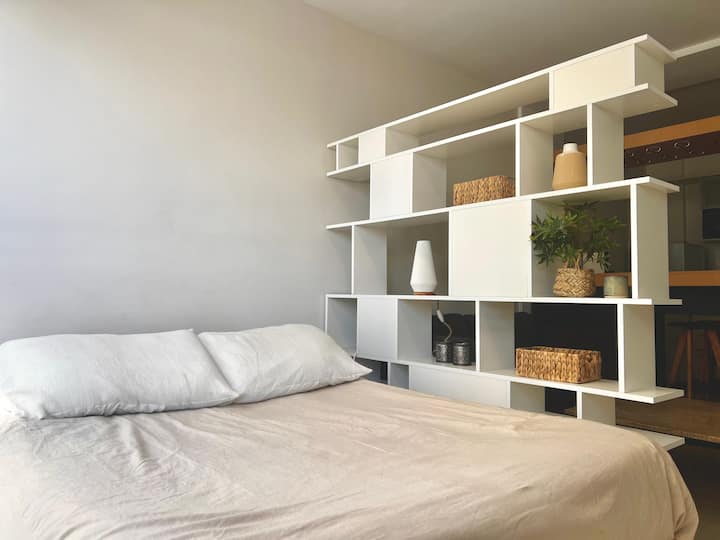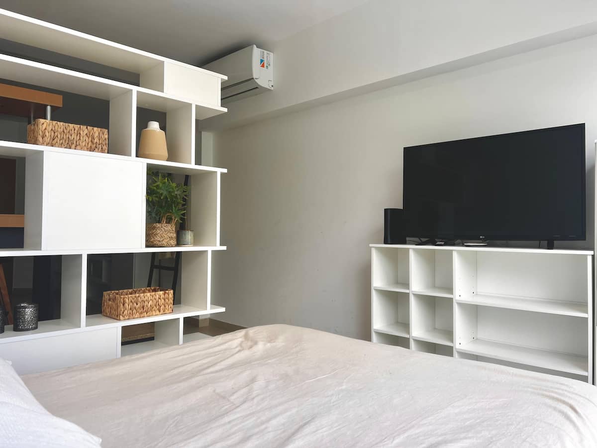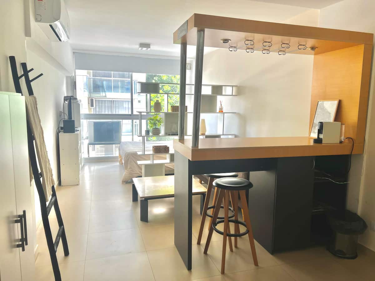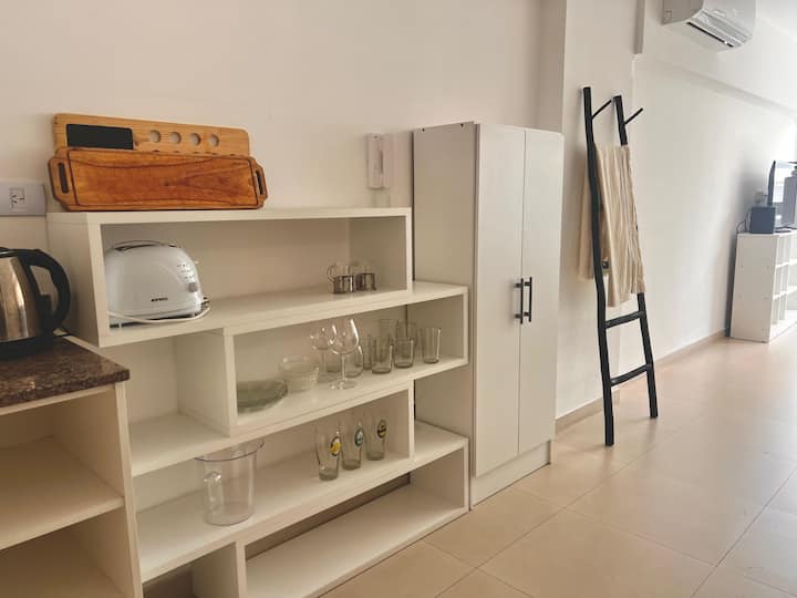 Квартира-студия с отдельной ванной комнатой и оборудованной кухней. В распоряжении высокоскоростной Wi‑Fi, Smart TV и кондиционер с режимами охлаждения и обогрева. В здании предусмотрены общий бассейн, тренажёрный зал и прачечная (стирка/пользование может иметь дополнительную стоимость, требуется уточнение). Заселение после 15:00; для длительных проживаний свыше 7 дней предусмотрена дополнительная уборка в ходе проживания.