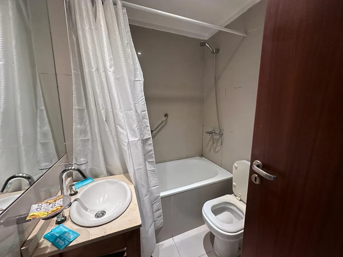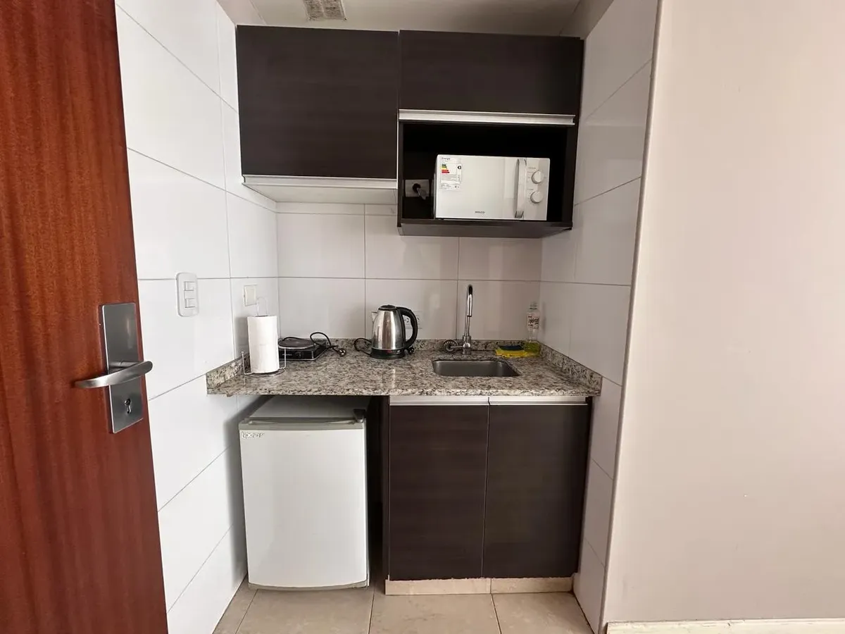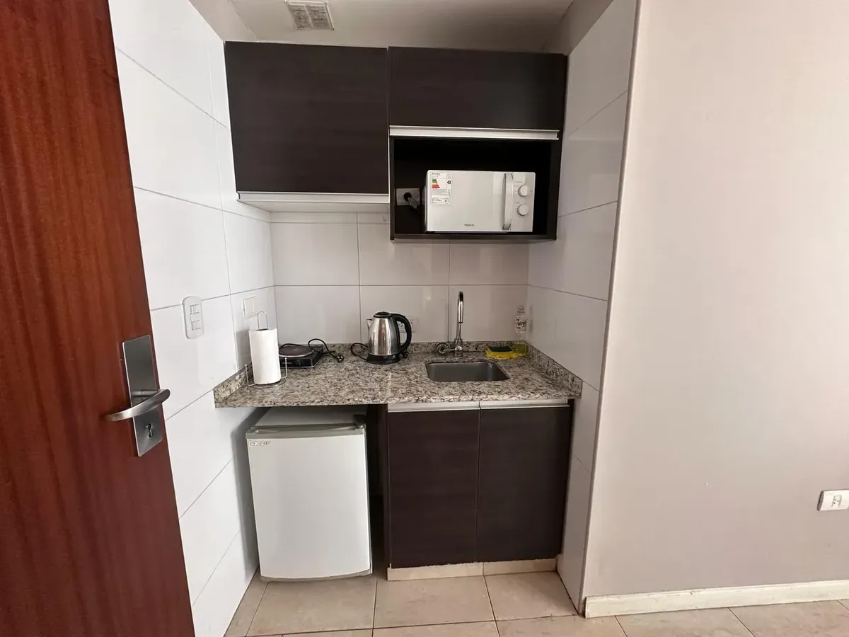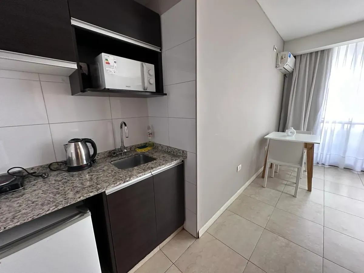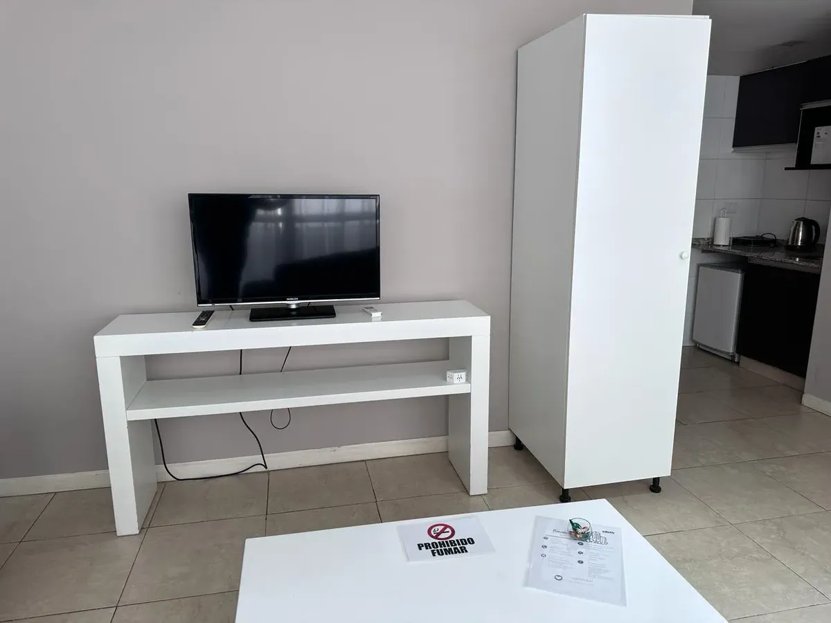 Квартира-студия с мебелью и полной комплектацией для помесячной временной аренды в Buenos Aires, рассчитана на 2 человека. В комнате установлена двуспальная кровать, предусмотрена возможность раздельной конфигурации на две односпальные кровати. Есть совмещённый санузел с ванной и мини-кухня с холодильником (frigobar), электрической варочной панелью и микроволновой печью. В квартире установлены кондиционер (холод/тепло), телевизор LED 32 дюйма и WiFi. В стоимость аренды включены коммунальные плат
