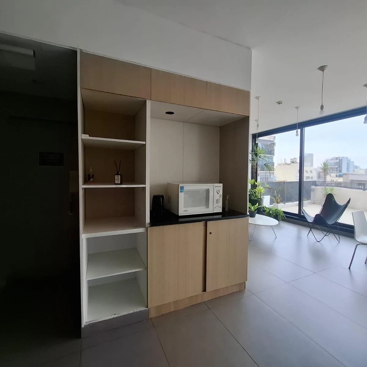 Квартира-студия в аренду в Monserrat, этаж с лифтом, окна во двор (disposición contra frente) и ориентация на север. Общая площадь около 35 m², из них 31 m² крытых. В помещении оборудованная кухня с навесными и нижними шкафами, есть встроенные места для хранения, а также отдельная полноценная ванная комната.