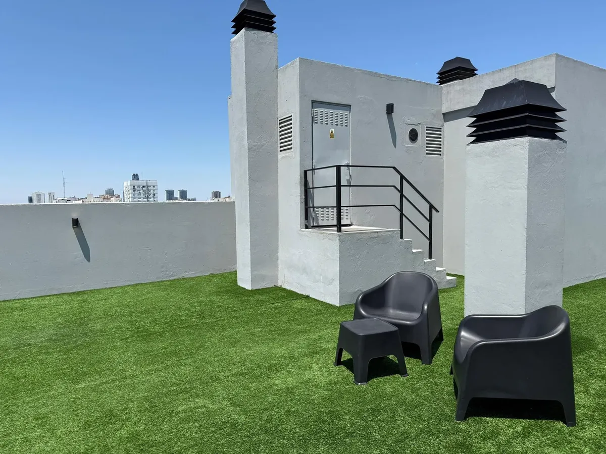 Квартира-студия под временную аренду в Monserrat, 37 m² общих, из них 2,7 m² приходится на балкон. Внутри: полностью оборудованная кухня, ванная комната, совмещённое пространство для зоны отдыха и гостиной, места хранения, собственная кладовая (baulera). В здании: coworking, терраса, зелёная зона и laundry, электронная охрана 24 часа, ресепшн с 9 до 17, вход по QR. Кофейня в процессе завершения на первом этаже. Аренда 550 USD плюс коммунальные платежи и налоги (примерно 250 USD).