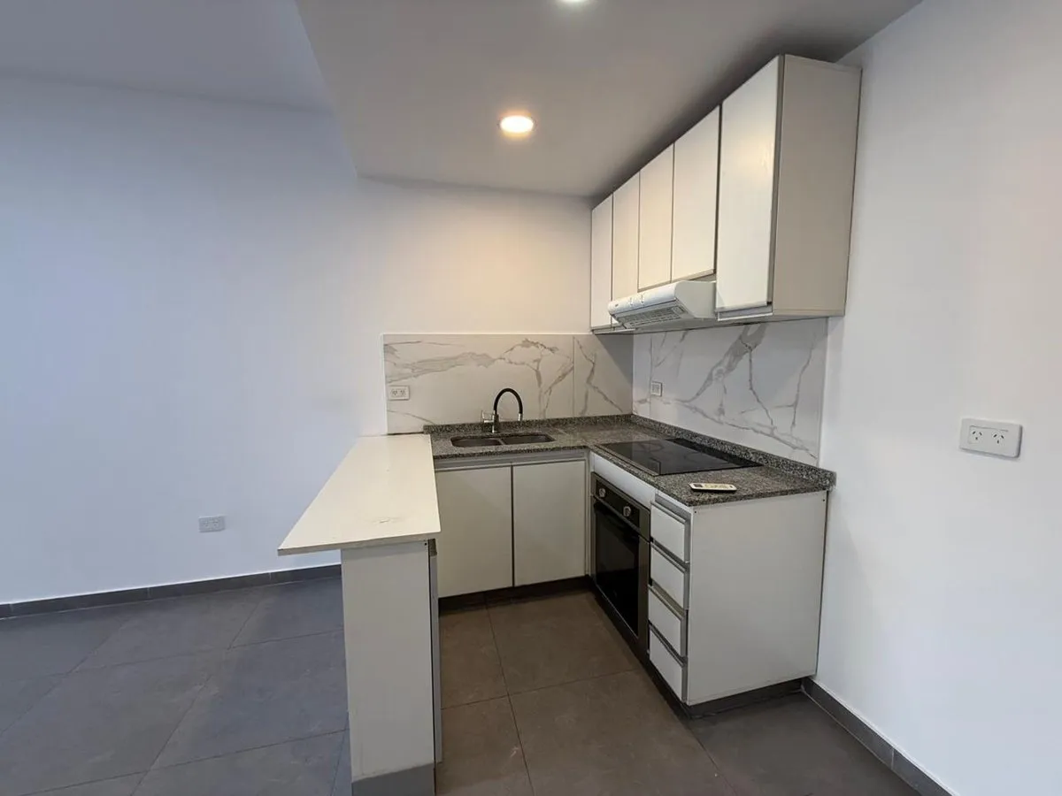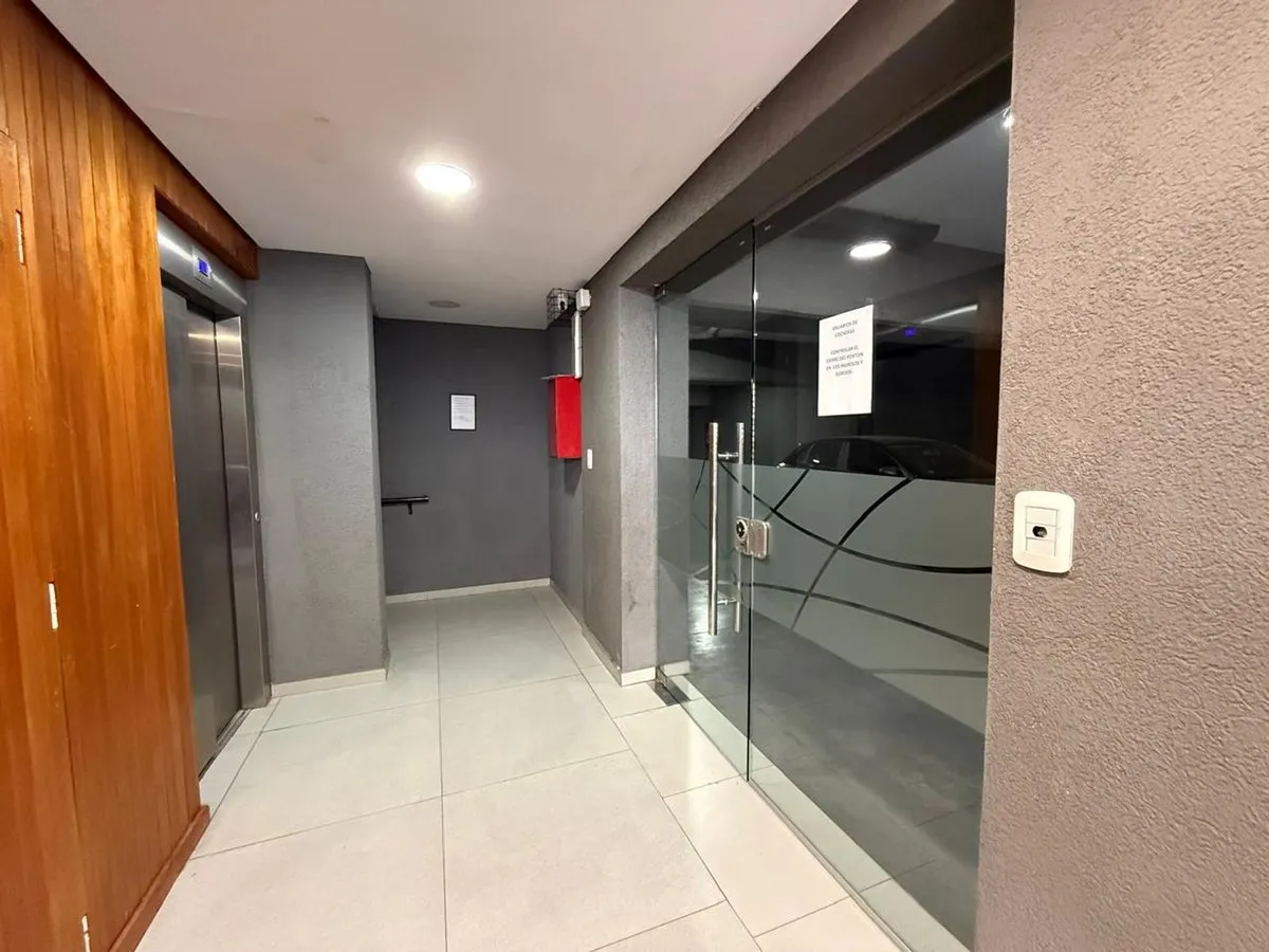 Квартира-студия в аренду площадью 38 m²: 36 m² крытых и 2 m² полукрытых, с балконом, на 2-м этаже в здании на 6 уровней. Кухня оборудована электрической плитой и вытяжкой, есть система хранения. В квартире установлены кондиционер, камеры видеонаблюдения и «вызов с экраном» (видеосвязь с улицей). Аренда на 2 года: $700.000 в месяц, с квартальными корректировками по Индекс de Precios al Consumidor.