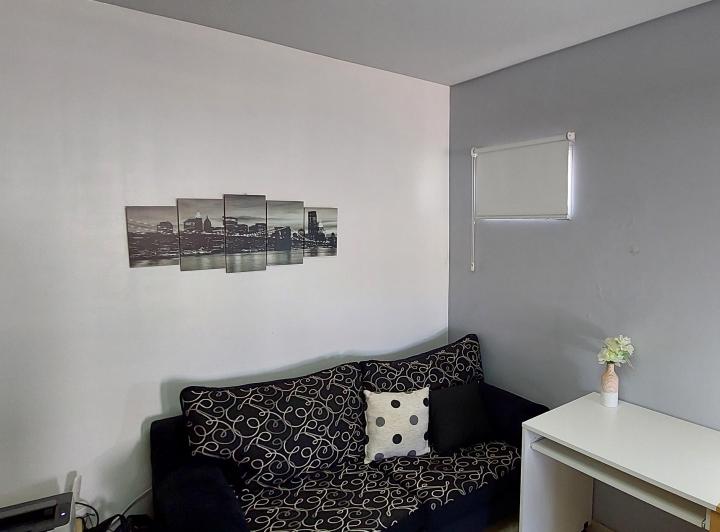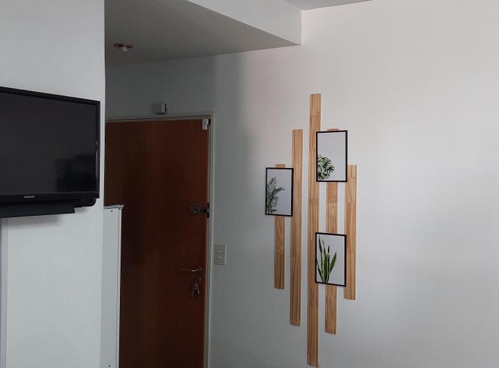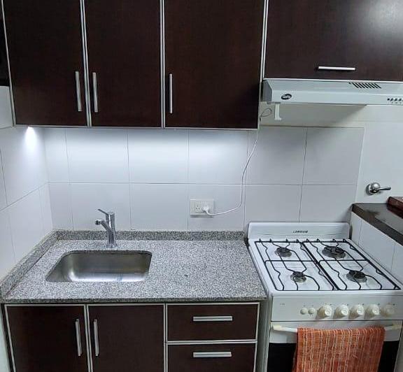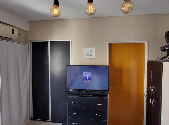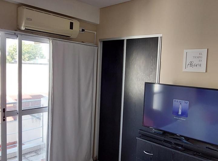 Квартира-студия площадью неизвестно в Monte Castro на 3-м этаже, окна во двор, с балконом. В здании по 3 квартиры на этаже. Кухня оборудована вытяжкой и газовой плитой; есть центральное горячее водоснабжение, кондиционер split, освещение под столешницей, детектор монооксида углерода. Санузел полностью оборудован, с биде и ванной; есть просторный встроенный шкаф. Частично с мебелью: шторы black out, стиральная машина и телевизор. Коммунальные платежи здания указаны как expensas ($Ver datos). Треб
