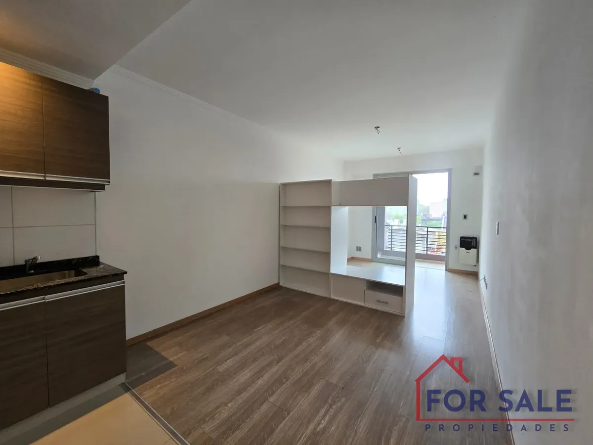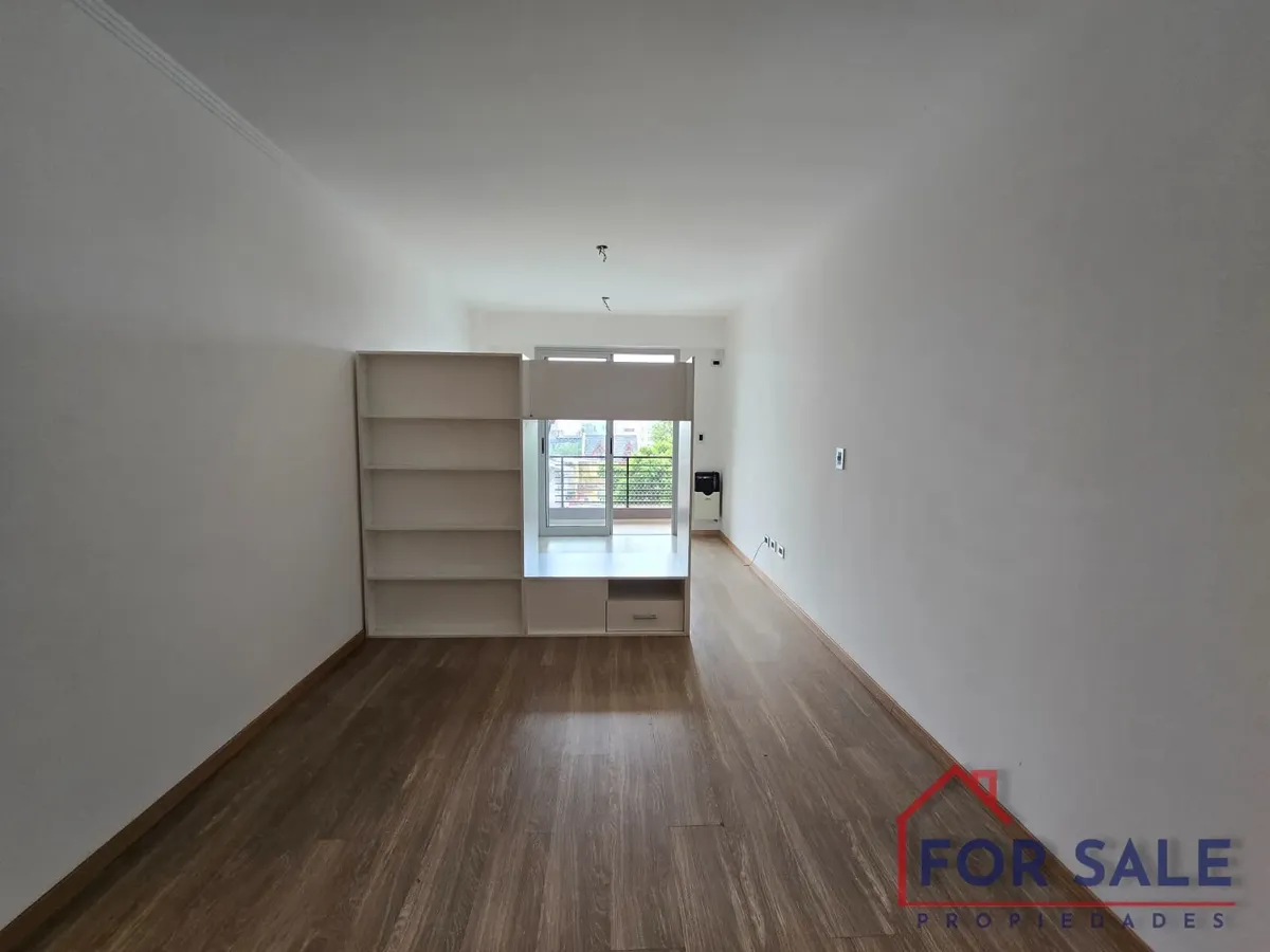 Квартира-студия в здании Mirando Miranda ("La Jirafa") в Monte Castro, 4-й этаж, окна во двор. Площадь помещения 3,20 x 8 m с плавающим полом, установлен обогреватель tiro balanceado и перегородка с шкафом. Кухонная зона укомплектована мебелью и газовой варочной поверхностью; на балконе во двор размещены стиральная зона и электрический бойлер. Полная ванная с ванной. В доме предусмотрены зоны общего пользования: зоны гриля, солярий, душевые и сад на верхнем уровне. Коммунальные платежи не указан