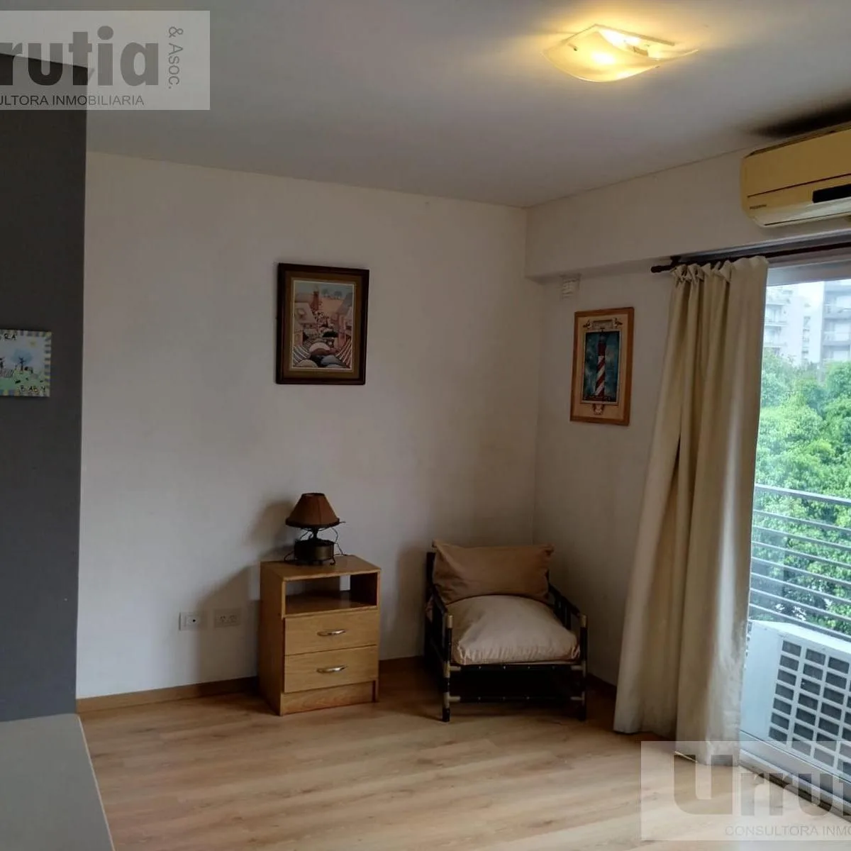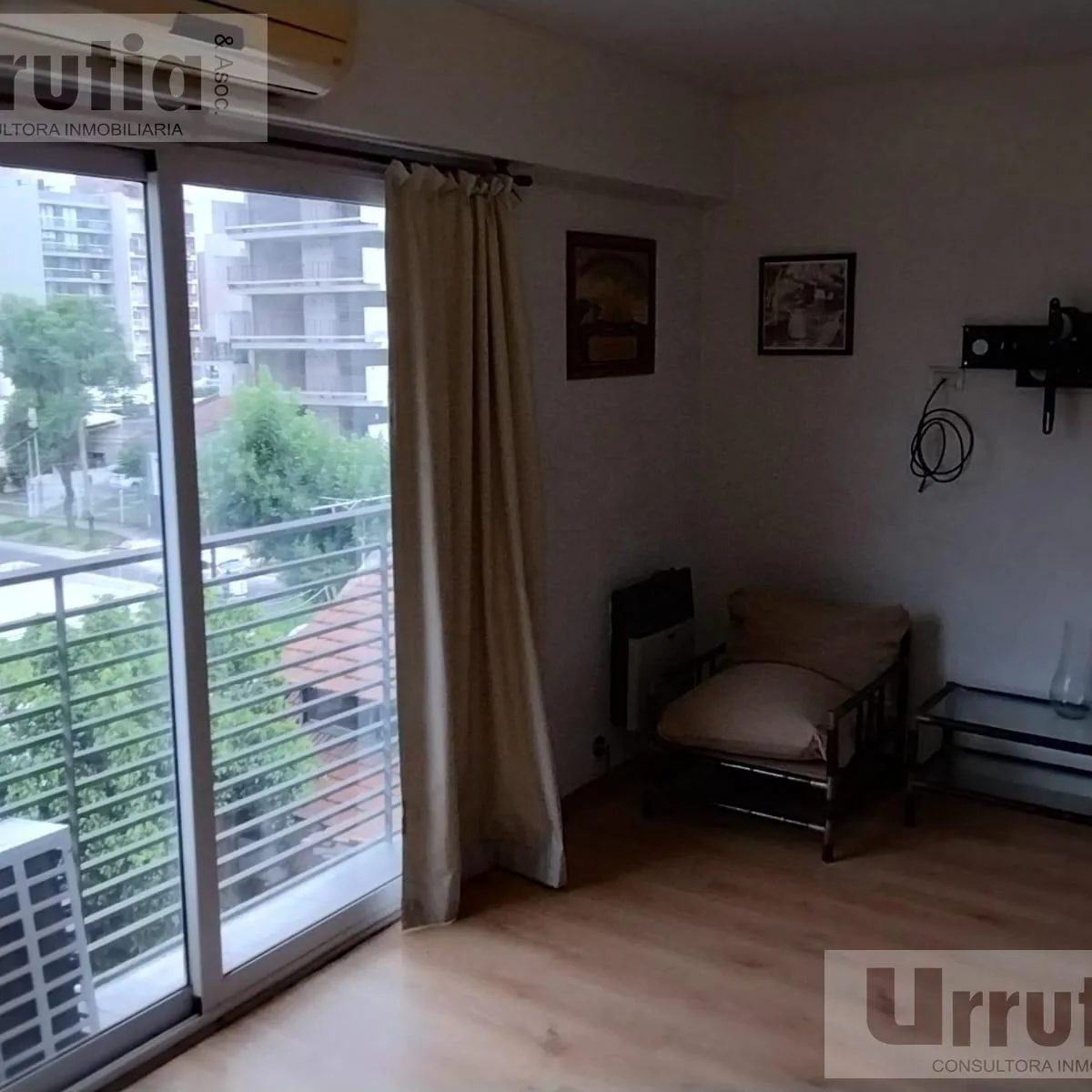 Квартира-студия в Morón Sur, в 4 кварталах от Plaza de Morón. Площадь в объявлении не указана. Оборудованная кухня с мебелью под верхние шкафы и нижнюю тумбу по размерам, предусмотрено место для холодильника и есть стиральная машина. Полная ванная, французский балкон. В здании есть терраса, зона для стирки, общая гостиная для жильцов с зоной гриля, мебель и техника в составе: холодильник и стол со стульями. Установлены камеры безопасности и периметральное электрозаграждение.