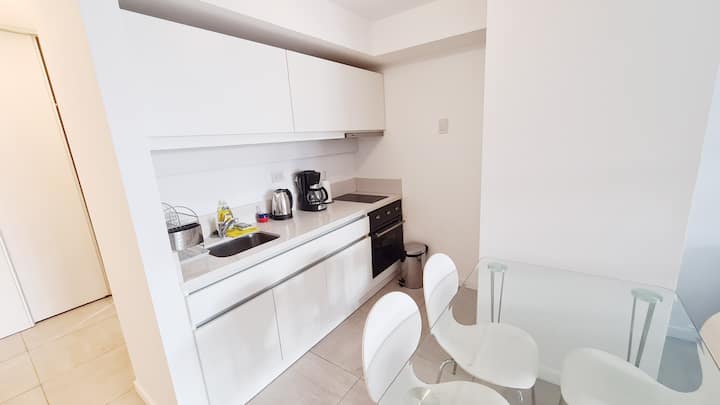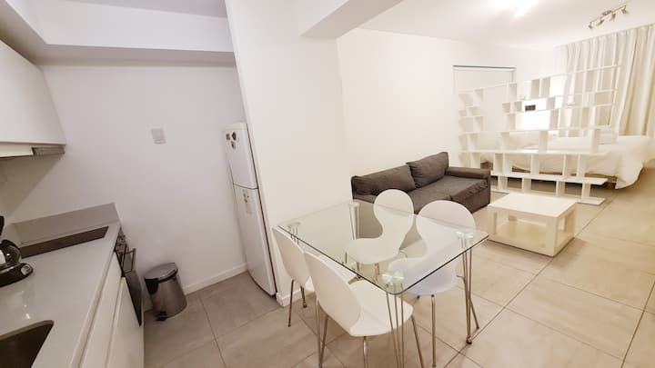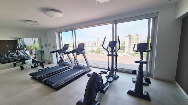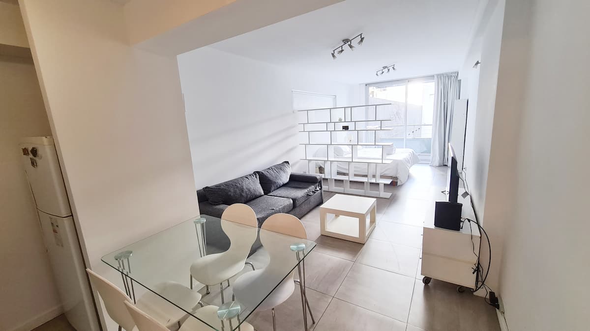 Квартира-студия в многоэтажном доме в Núñez. В комплексе есть круглосуточная охрана. Студия с двухместной кроватью, обеденным столом и стульями, отдельной ванной комнатой, кондиционером холод/тепло и оборудованной кухней. Жильцам доступны общие зоны: бассейн, спортзал и терраса.