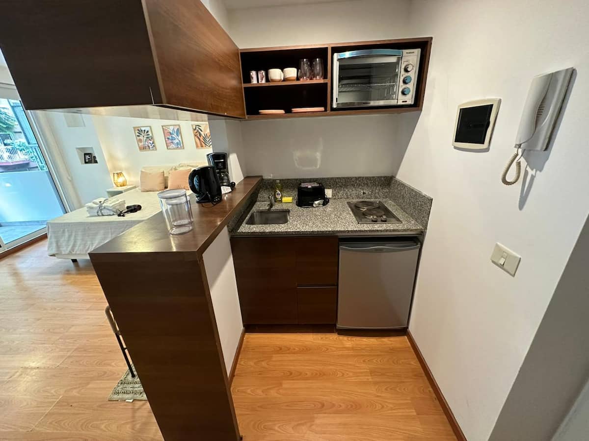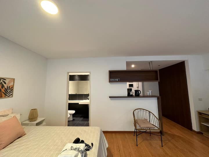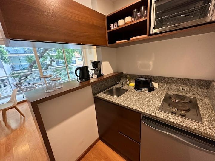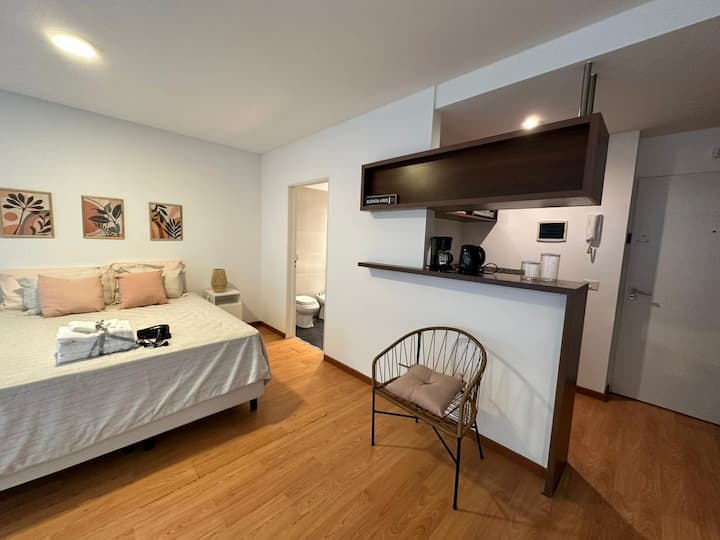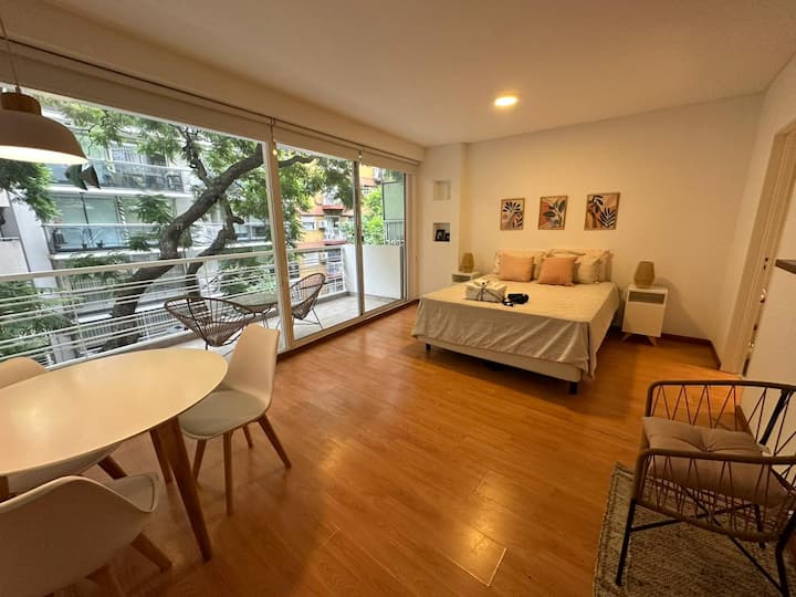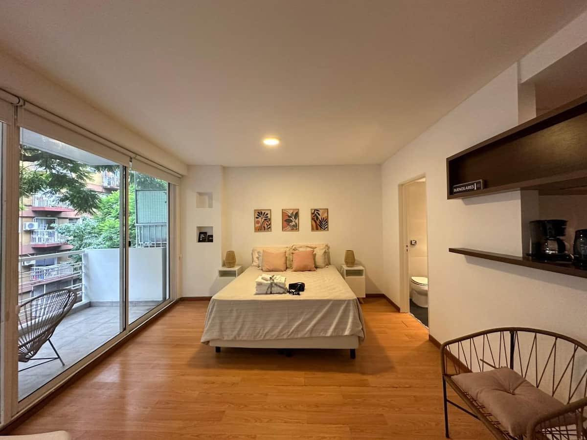 Квартира-студия в Palermo с новой мебелью и оборудованием. В помещении двуспальная кровать, стол со стульями, полностью оборудованная кухня и полный санузел. Кондиционер холод/тепло. Предоставляются постельные принадлежности и полотенца.