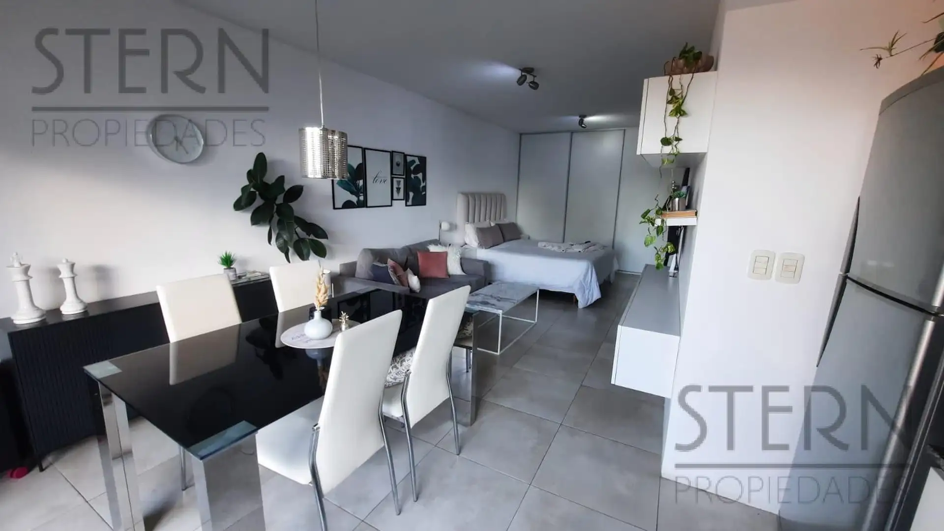 Квартира-студия площадью 36 m², 2-й этаж, окна во двор (contrafrente), с балконом. В описании указаны тихое помещение, много дневного света, место для хранения велосипедов и камеры видеонаблюдения. Коммунальные платежи здания указаны как включающие AYSA и Metrogas для горячей воды, ABL около $12.900.