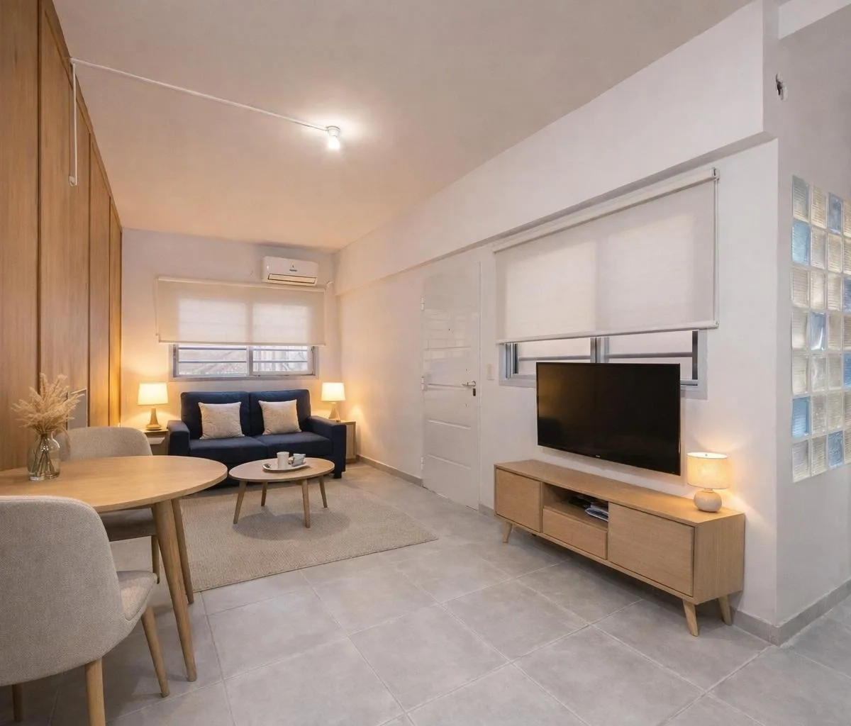 Квартира-студия в аренду в Quilmes, комплекс на 12 de Octubre 511, между Bernardo de Yrigoyen и Manuel Quintana. На первом этаже: единое помещение с объединёнными гостиной, кухней и столовой, отдельная ванная комната. Домофон/мебель и бытовая техника в объявлении не указаны; состояние описано как хорошее. Указанные площади и изображения носят справочный характер и не являются договорными данными.